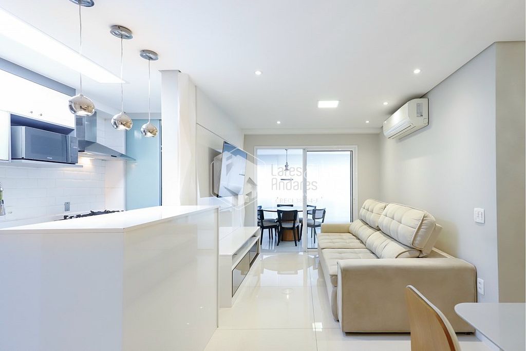 Ao entrar você será recebido por ambientes integrados amplos e bem iluminados com janelas grandes proporcionando vistas deslumbrantes do décimo andar. A área social conta com ar-condicionado sala de jantar elegante cozinha planejada com armários embutidos e uma área de serviço prática. O imóvel é totalmente mobiliado garantindo ainda mais conveniência.