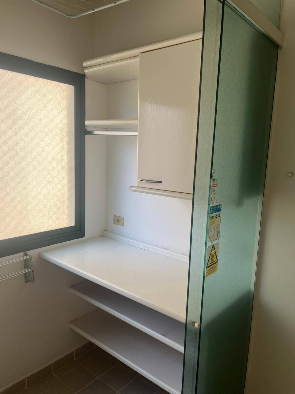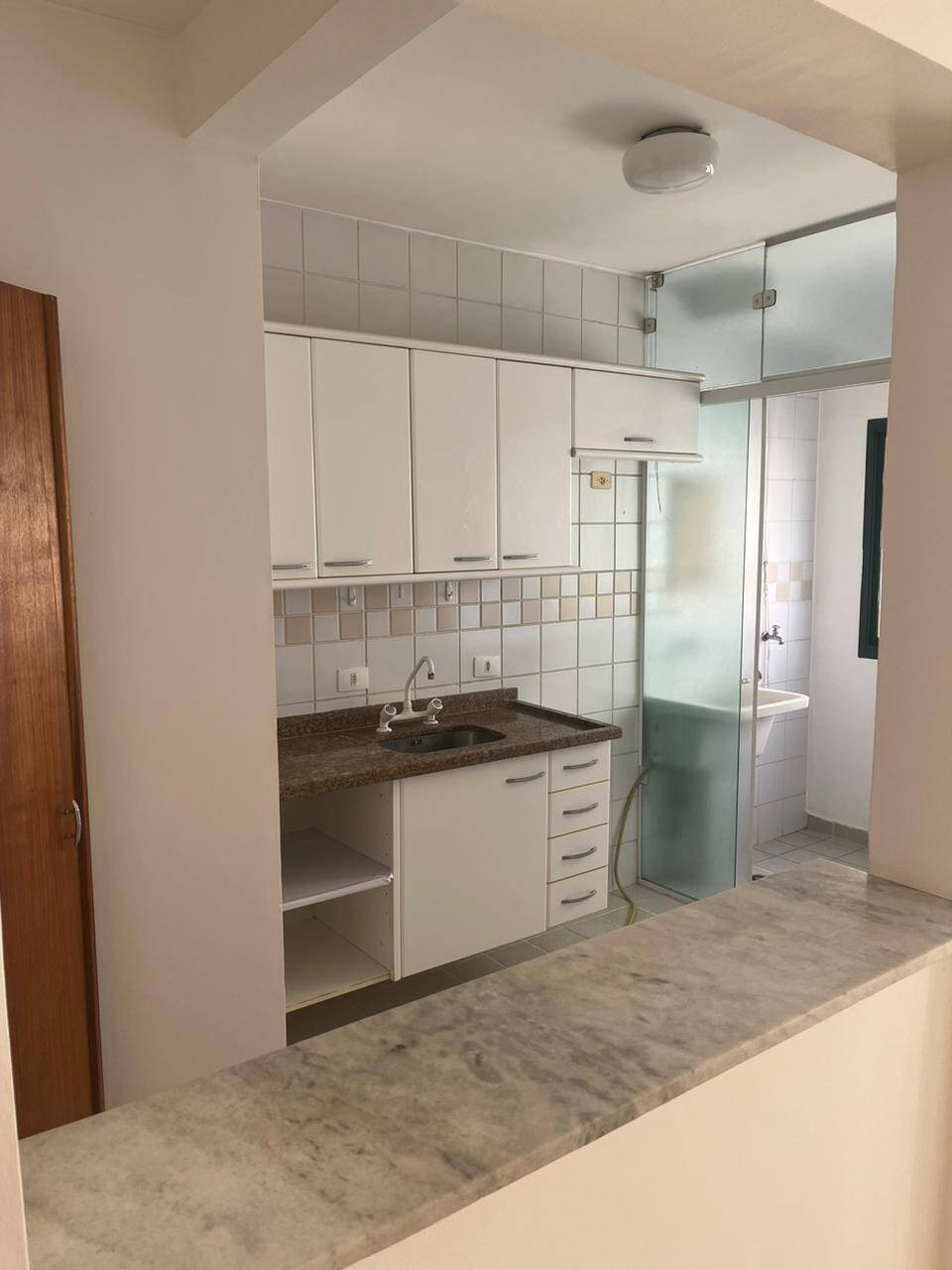 Apartamento de 85m² em Alphaville, Barueri, com 2 quartos, 1 banheiro, sala para dois ambientes, cozinha americana com bancada, lavanderia e 1 vaga de garagem. Totalmente mobiliado com móveis planejados.