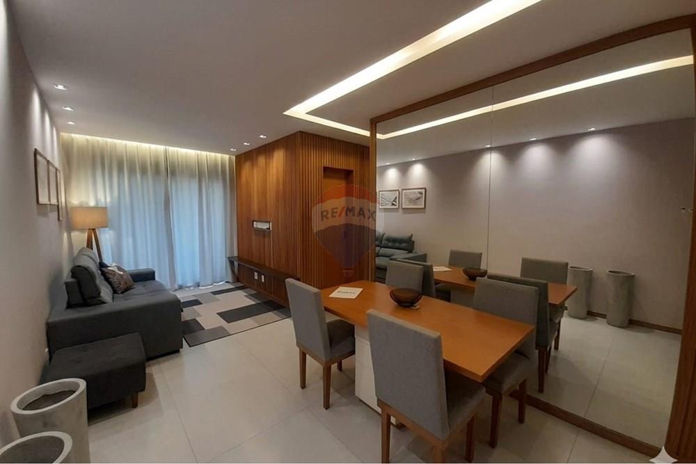 A sala é um dos grandes destaques do imóvel. Ampla e muito aconchegante, conta com sofá, mesa, espelho decorativo, luminárias modernas e uma decoração elegante, criando um ambiente perfeito para relaxar ou receber amigos.