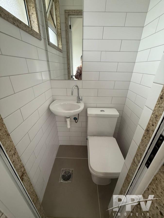 A cozinha é funcional e bem distribuída, contando ainda com banheiro de apoio. O imóvel dispõe também de banheiro social, agregando ainda mais praticidade ao dia a dia.
