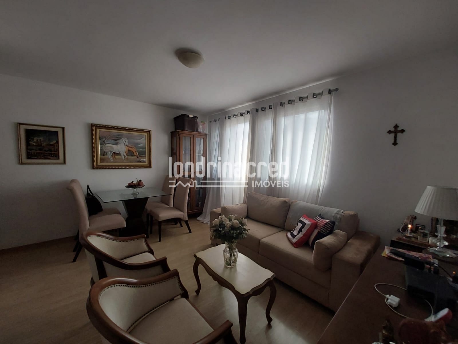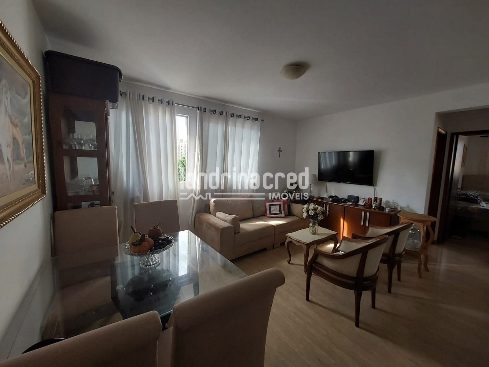Sala para dois ambientes, perfeitamente dividida entre estar e jantar, com piso laminado de alta durabilidade em todo o apartamento.