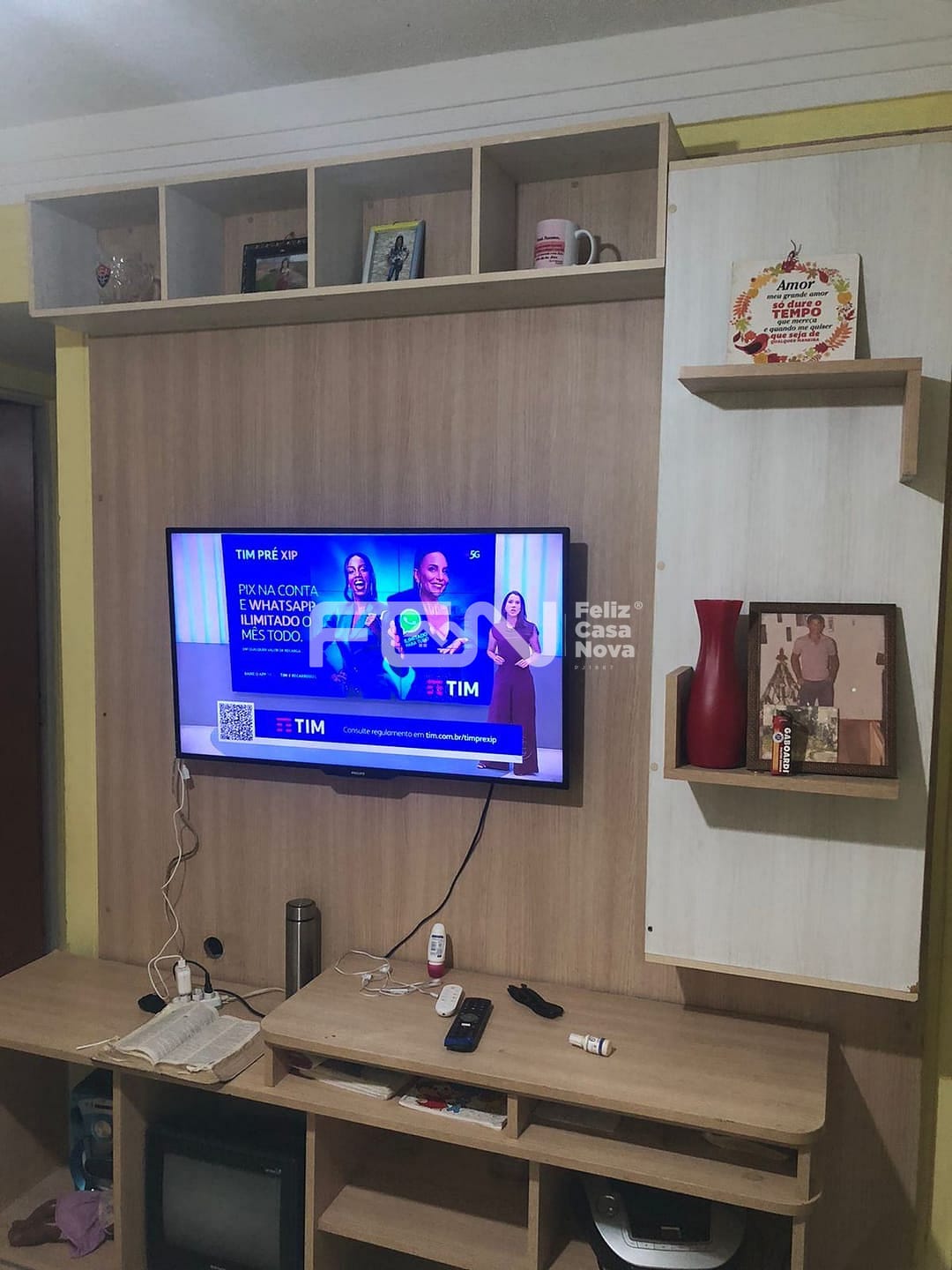 * Sala aconchegante com painel e rack