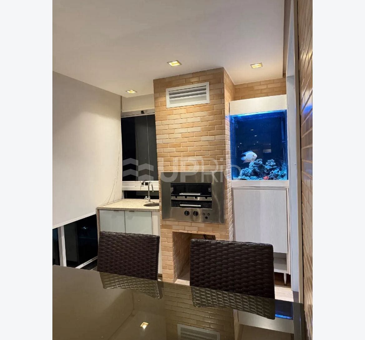 Espaço gourmet com churrasqueira privativa na varanda