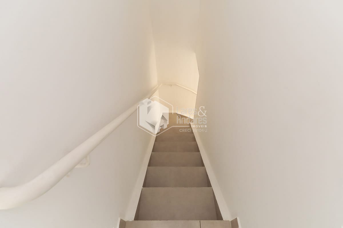 Subindo pela escada, a ala íntima revela dois dormitórios bem iluminados e silenciosos, ideais para descanso, home office ou quarto infantil. O banheiro social, surpreendentemente espaçoso e com acabamentos de bom padrão, reforça a sensação de cuidado e qualidade que permeia todo o imóvel.