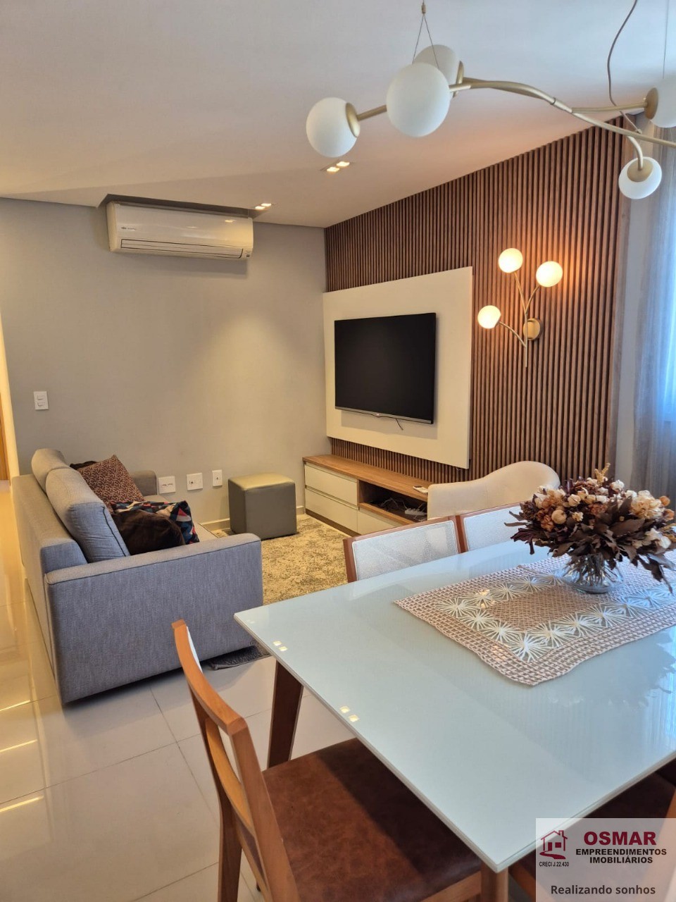 Infraestrutura: Apartamento com 82,00 m2 de área, mobiliado com 2 quartos, sendo 2 suítes, 1 banheiro social, cozinha planejada, área de serviço, 2 vagas de garagem, com aquecedor, ar condicionado, churrasqueira (parrilla), despensa e varanda.