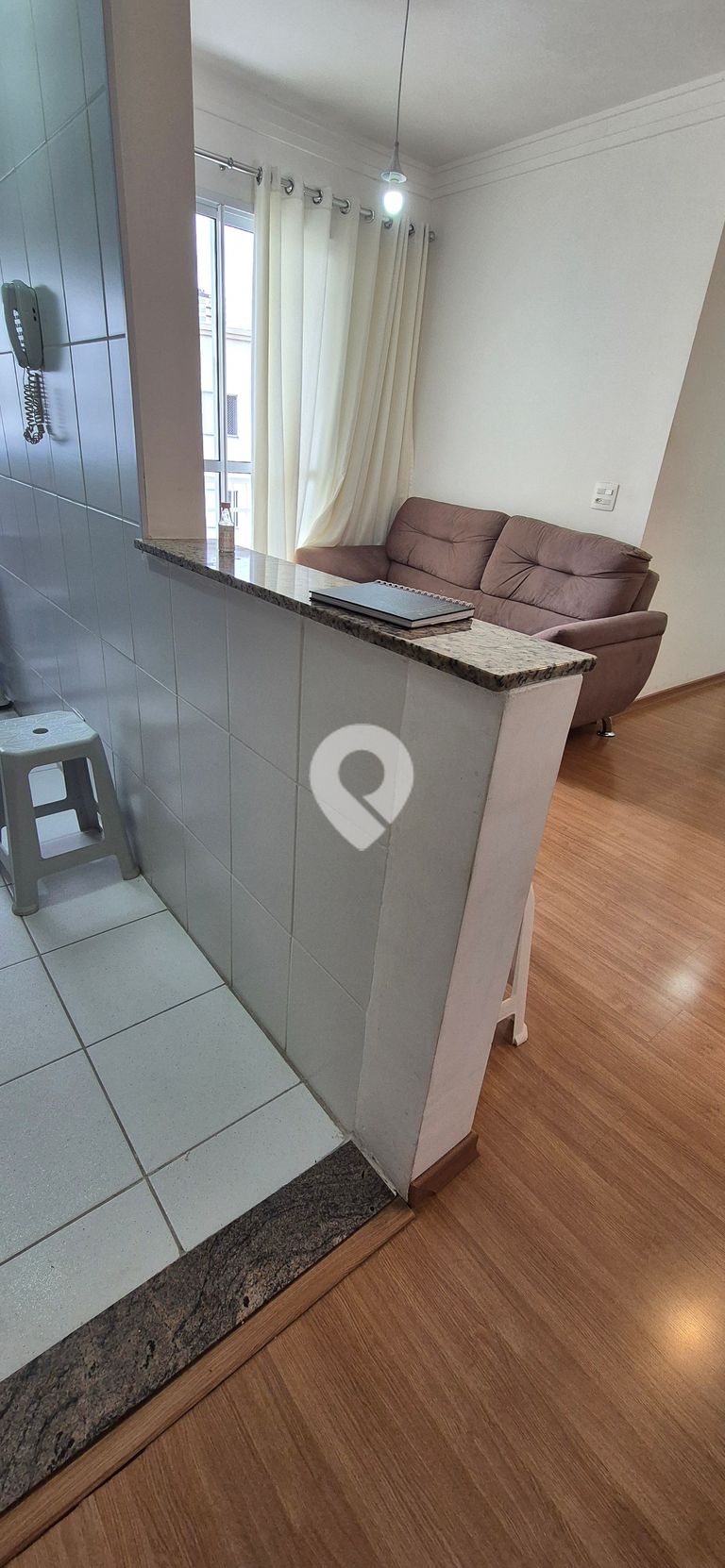 2 dormitórios, sala cozinha, banheiro, sacada e 1 vaga de garagem