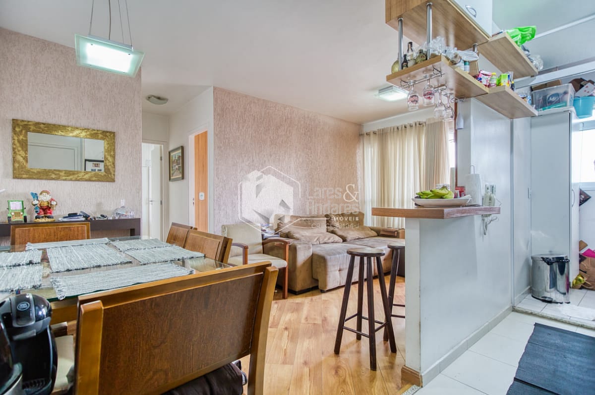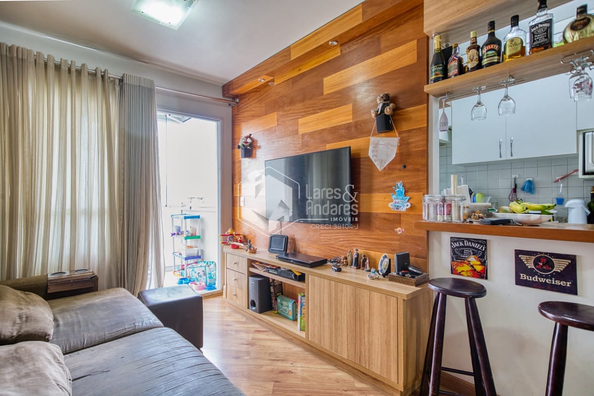 Apartamento pronto para morar, com 2 quartos (1 suíte), 2 banheiros, sacada e armários planejados. Ambientes bem iluminados, com sol da manhã.