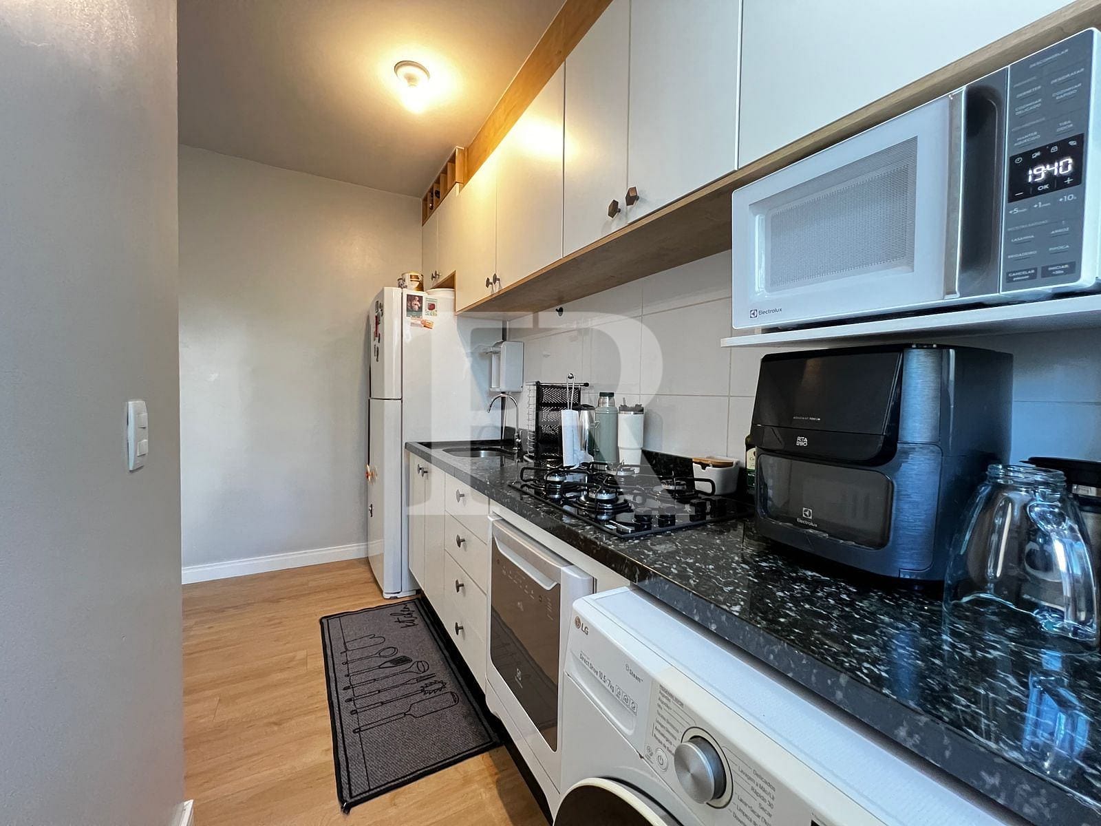 Cozinha com armários sob medida, cooktop, forno embutido,
