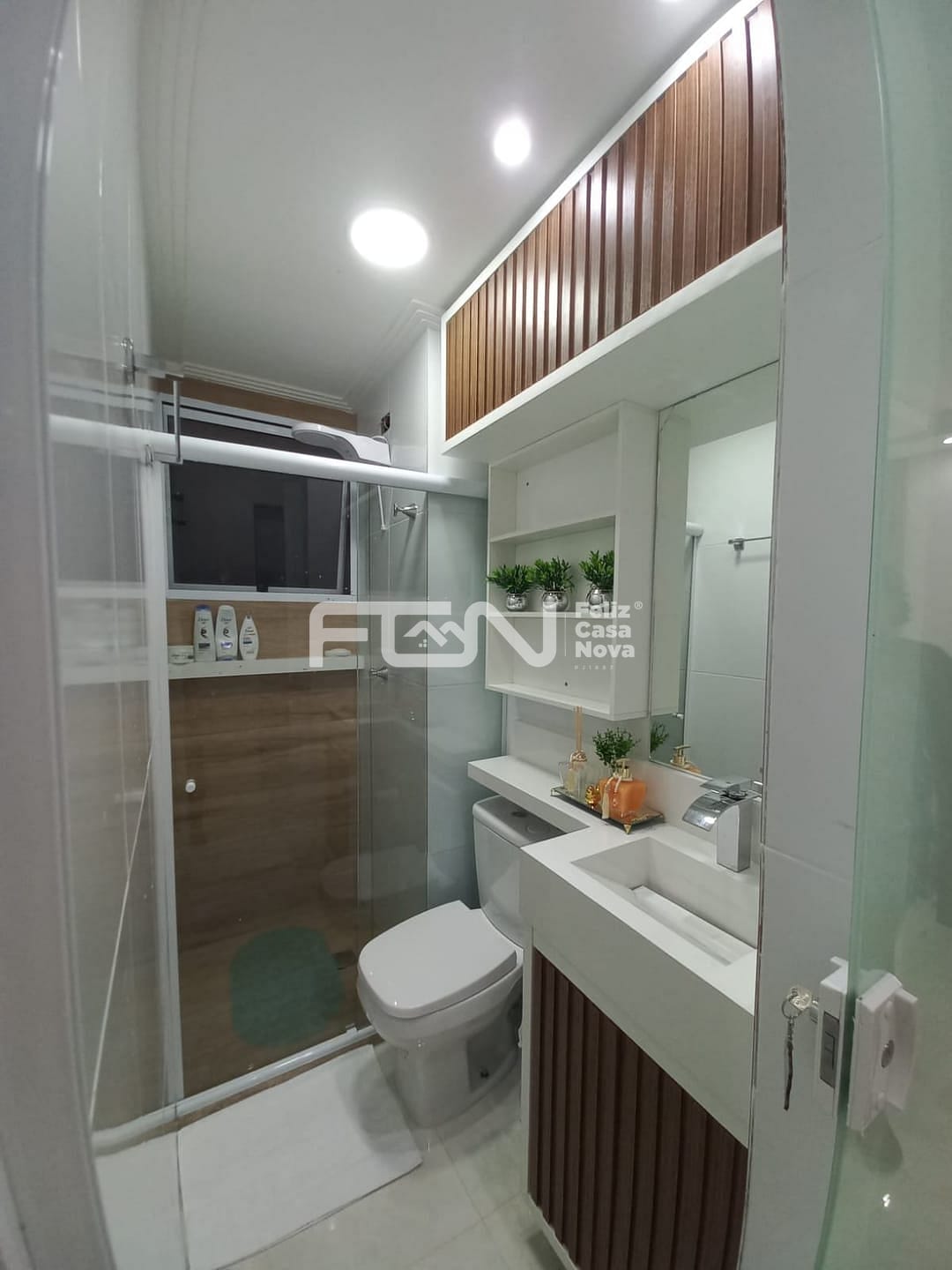 Banheiro: Com armários planejados.