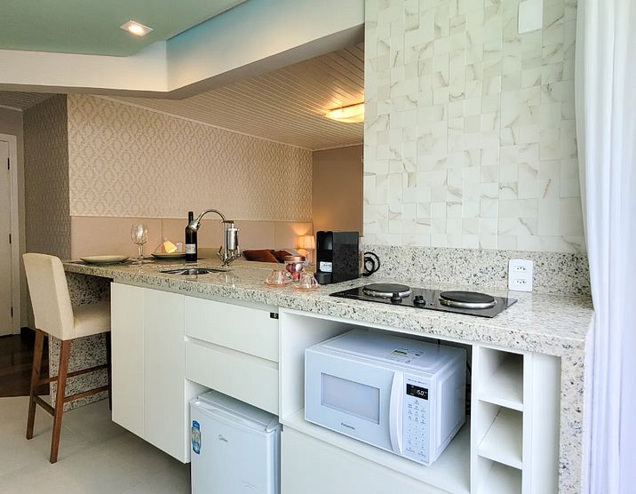 Cozinha Funcional: Cozinha moderna e prática, completa com aparelhos de última geração e espaço para refeições rápidas.