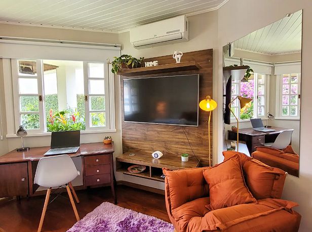 Área de Estar Convidativa: Uma sala de estar bem iluminada e arejada, perfeita para relaxar ou receber amigos e familiares.