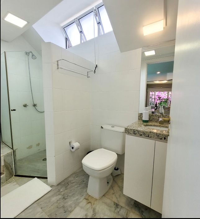 Banheiro Moderno: Um banheiro elegante, equipado com comodidades de alta qualidade para o seu conforto diário.