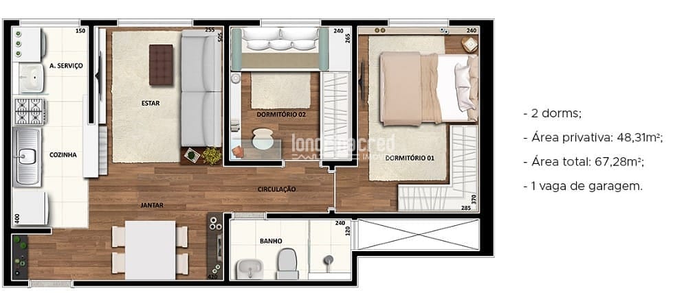 2 dormitórios bem iluminados