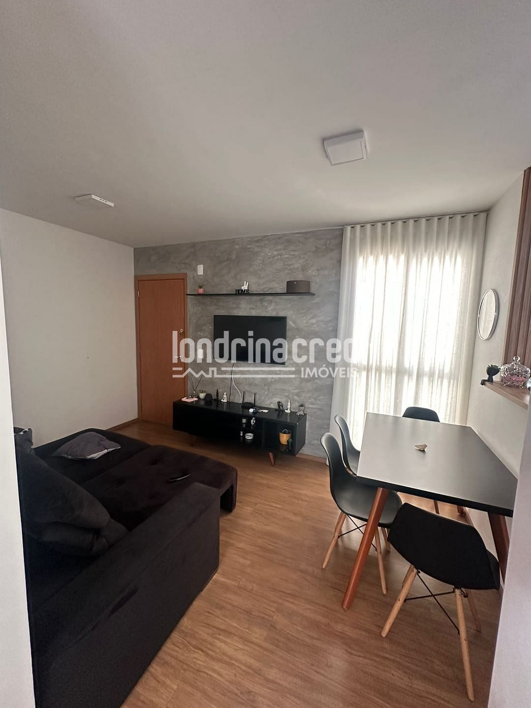 Possui 02 dormitórios, sendo um deles equipado com ar-condicionado, garantindo conforto térmico em todas as estações. A sala e os quartos contam com piso laminado, trazendo charme e sensação de aconchego ao ambiente. Já a cozinha e o banheiro social possuem revestimento em porcelanato, garantindo modernidade, durabilidade e fácil manutenção.