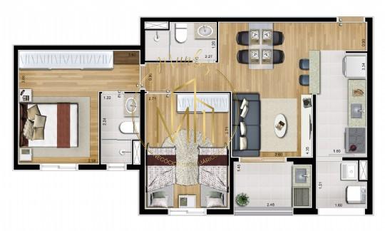 Área Privativa de 65,30 m².
