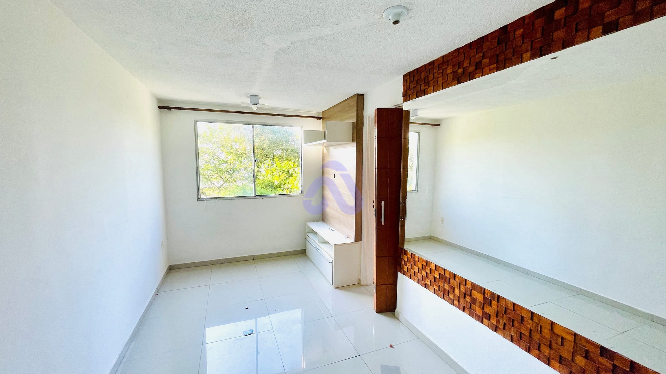 Apartamento com 46m², 2 dormitórios, sendo 1 com guarda roupas, banheiro com box de vidro, cozinha com armário planejado, lavanderia, sala para dois ambientes.