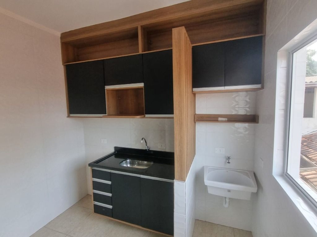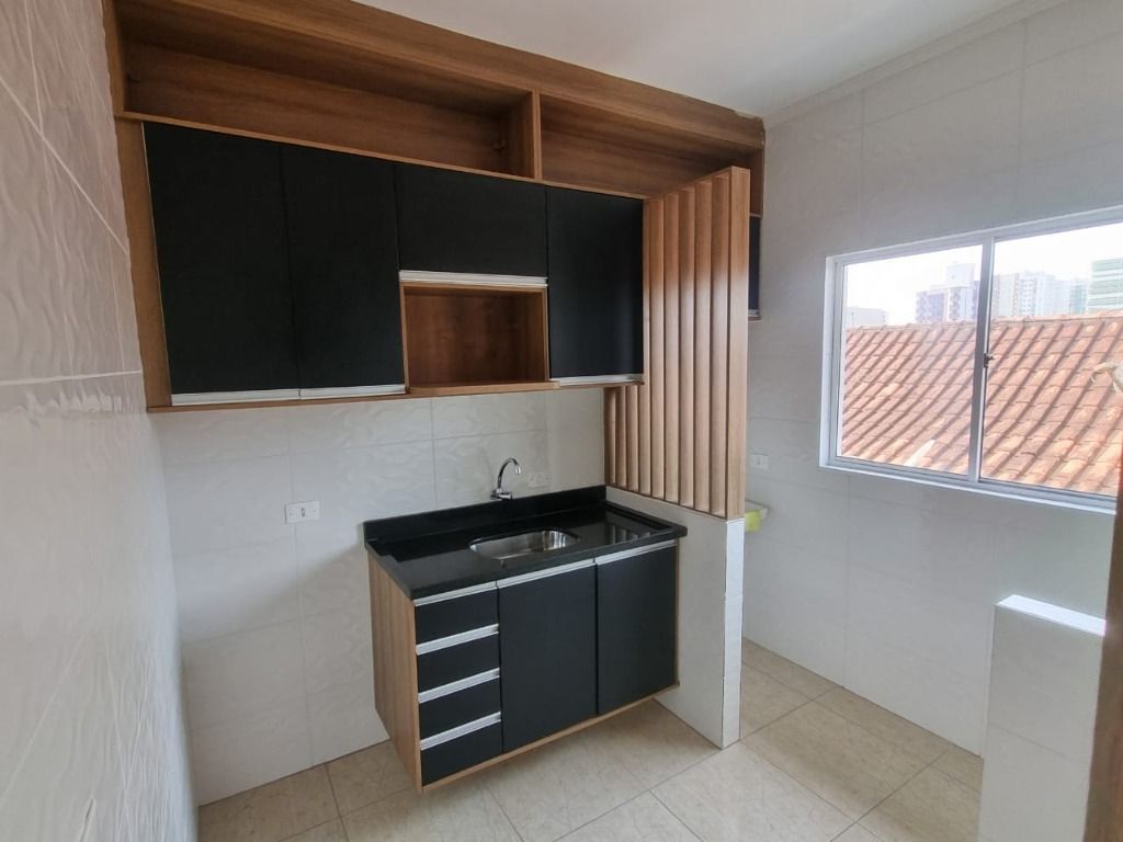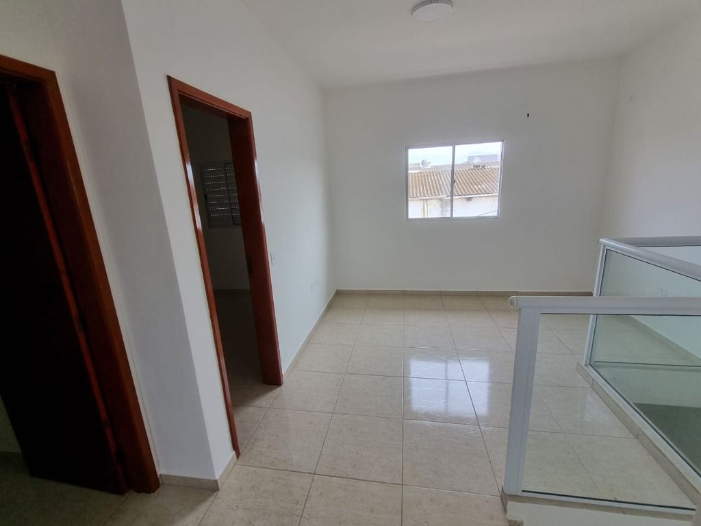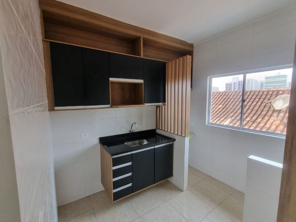 Casa de 2 dormitórios em condomínio fechado a venda em Praia Grande, sala, cozinha, área de serviço e 1 vaga na garagem.
