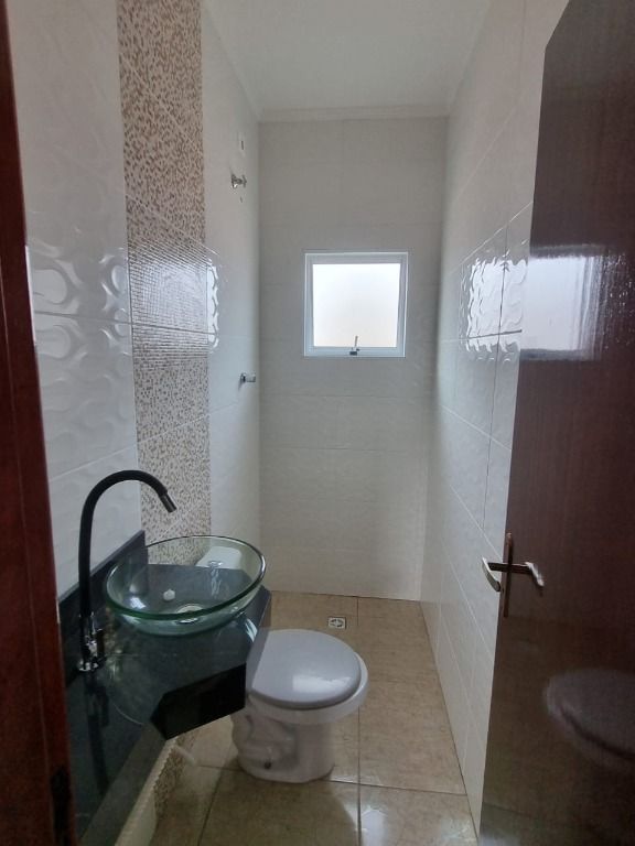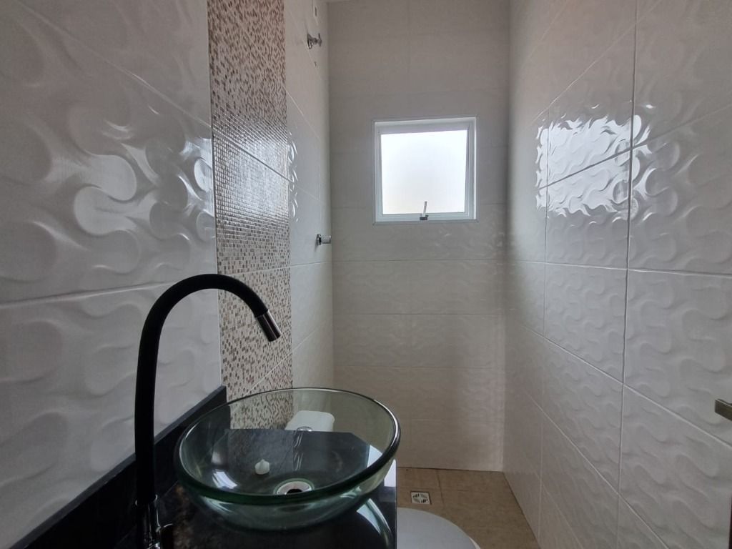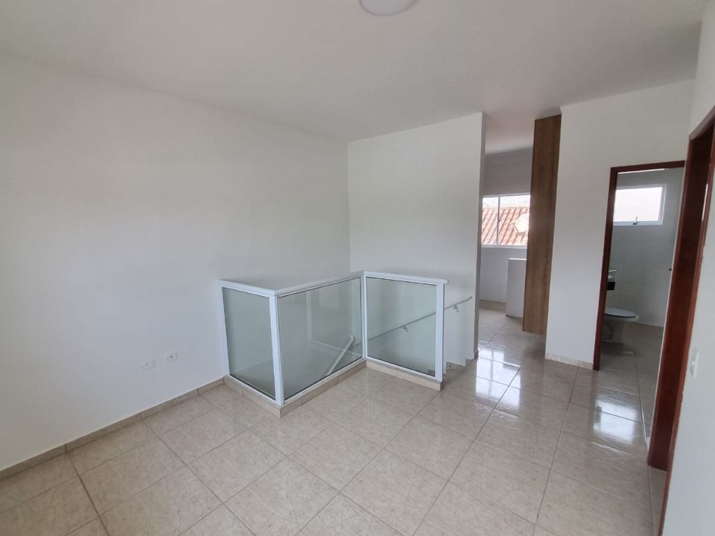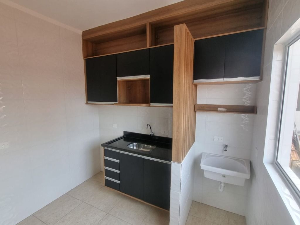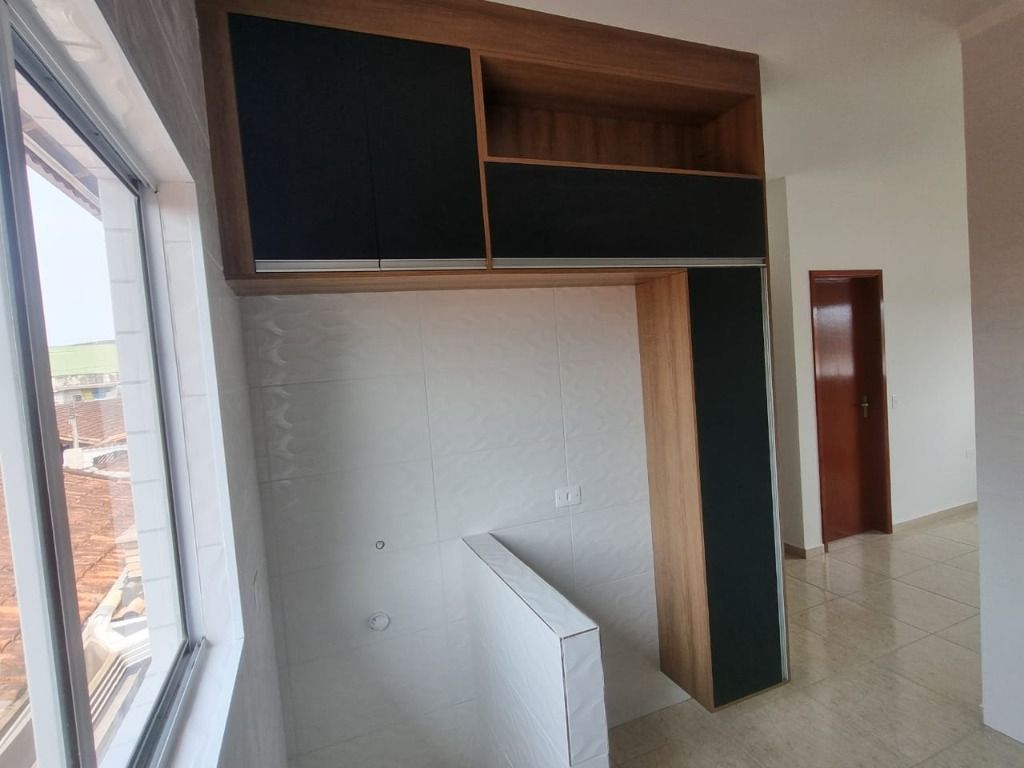 Casa de 2 dormitórios em condomínio fechado a venda em Praia Grande, sala, cozinha, área de serviço e 1 vaga na garagem.