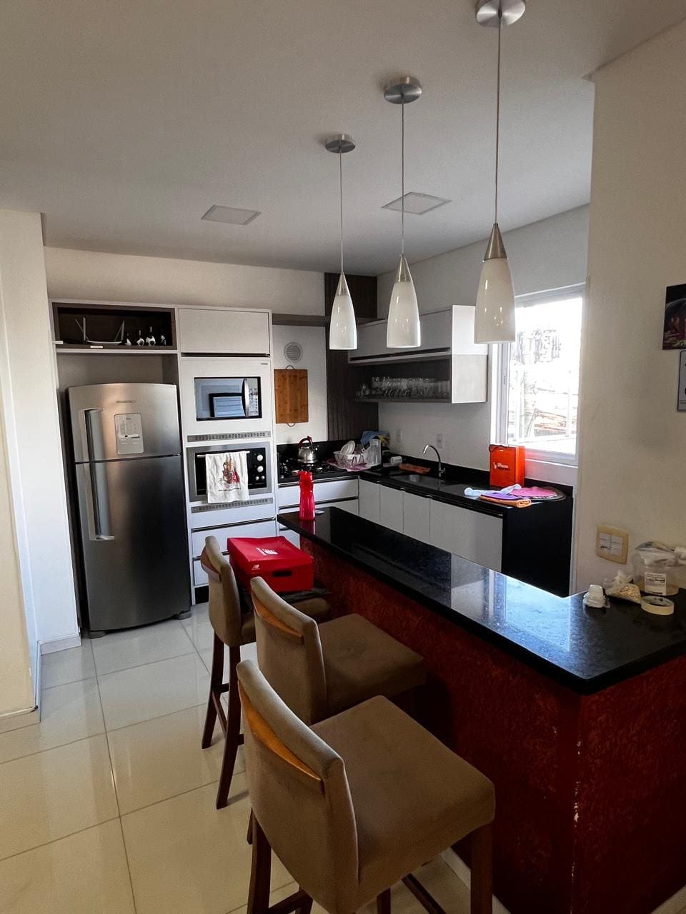 * Sacada com churrasqueira a carvão;