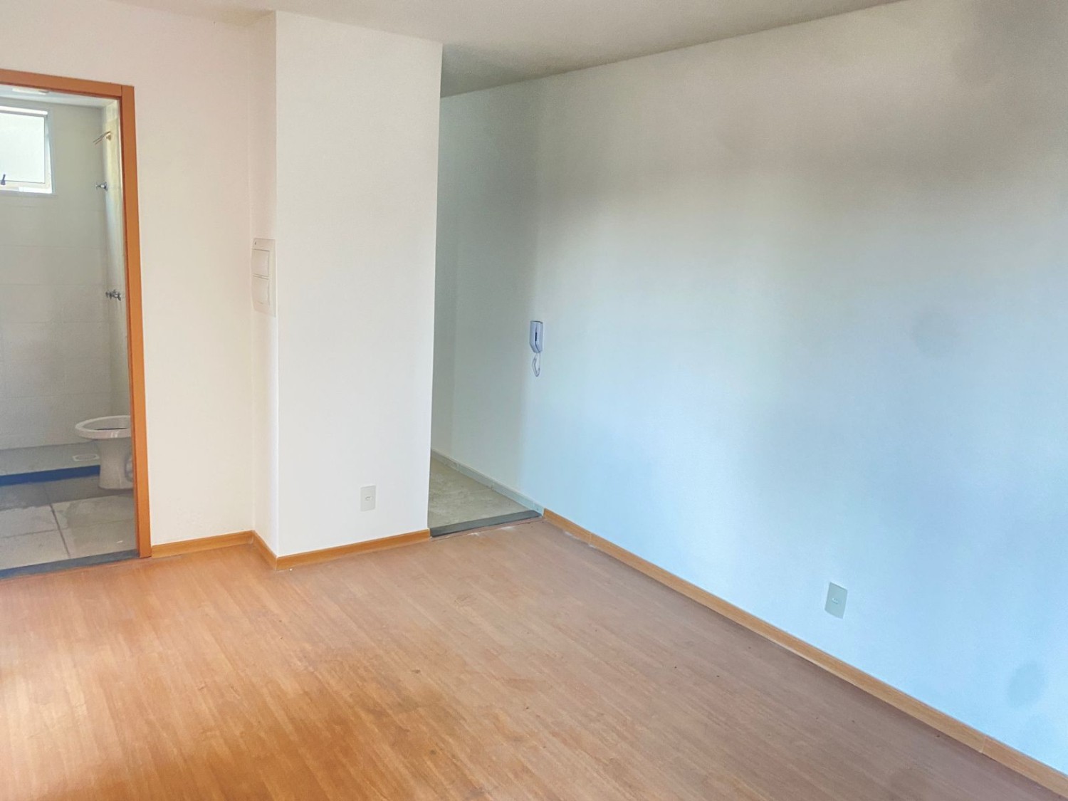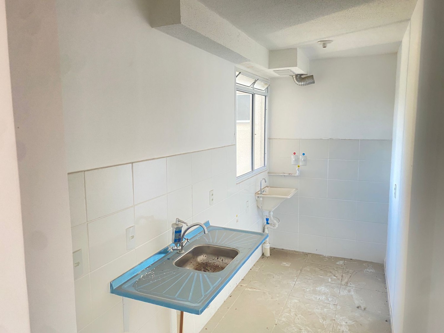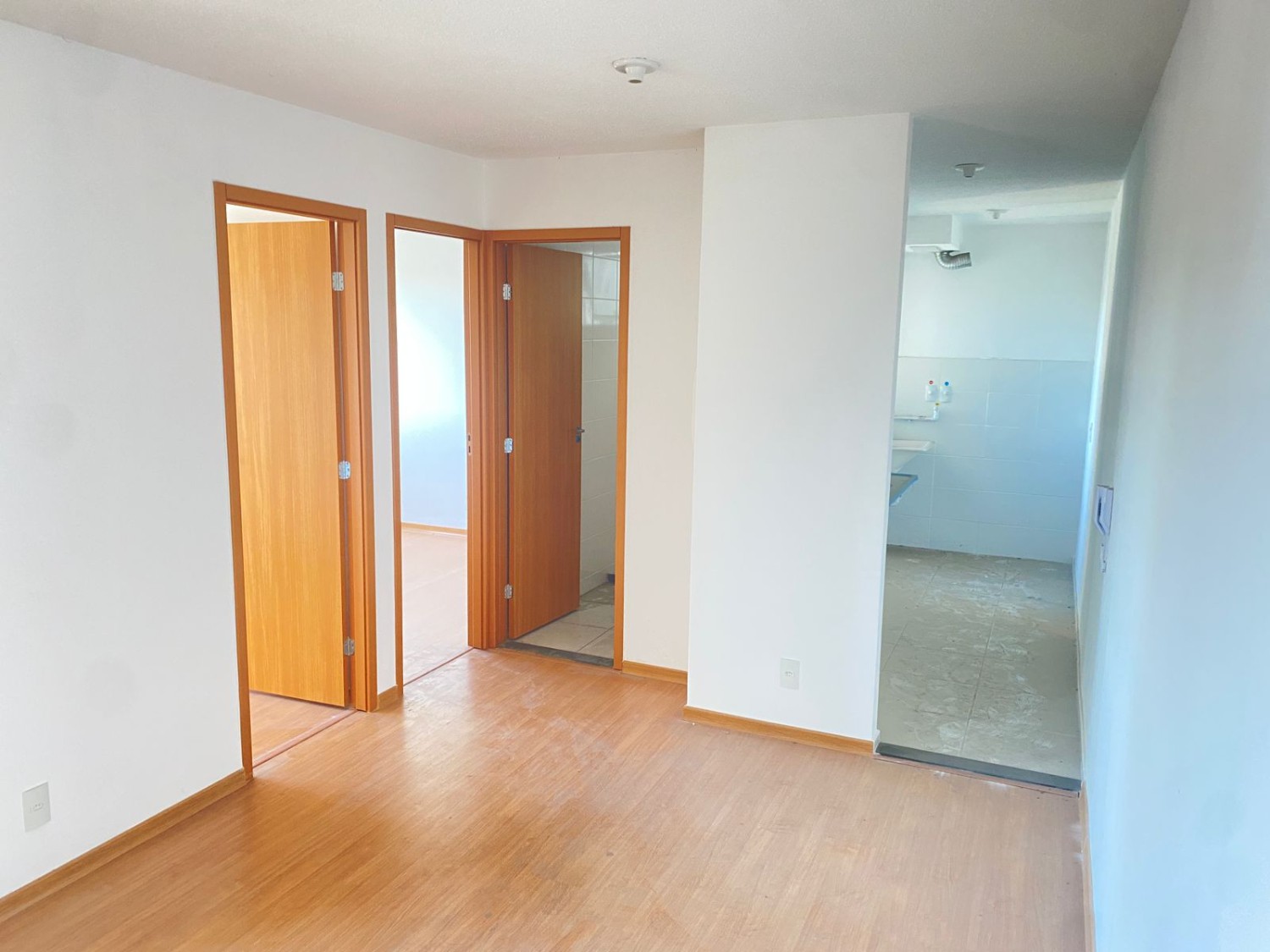 Apartamento com 2 quartos, sala ampla, banheiro social, cozinha com área de serviço.