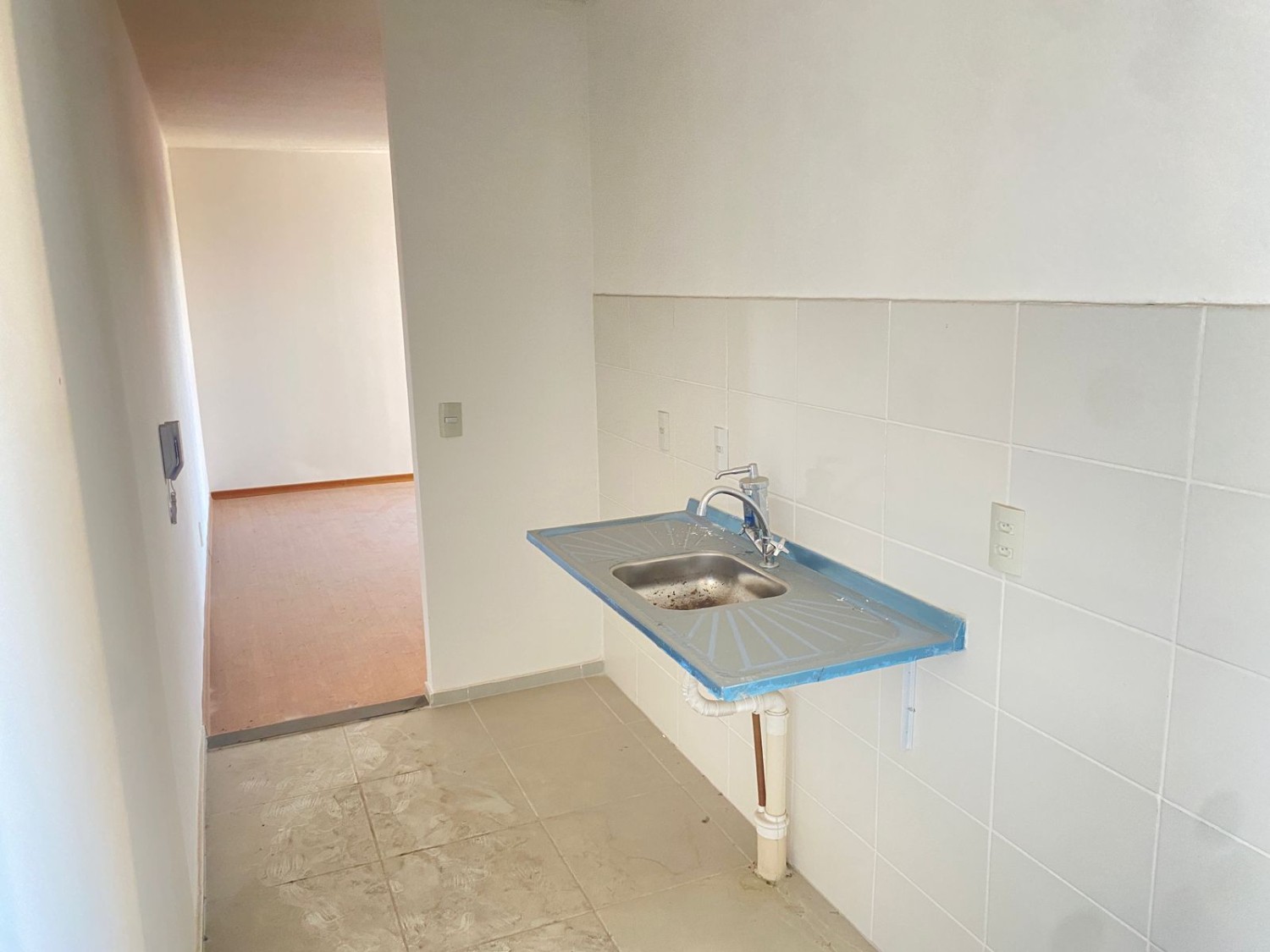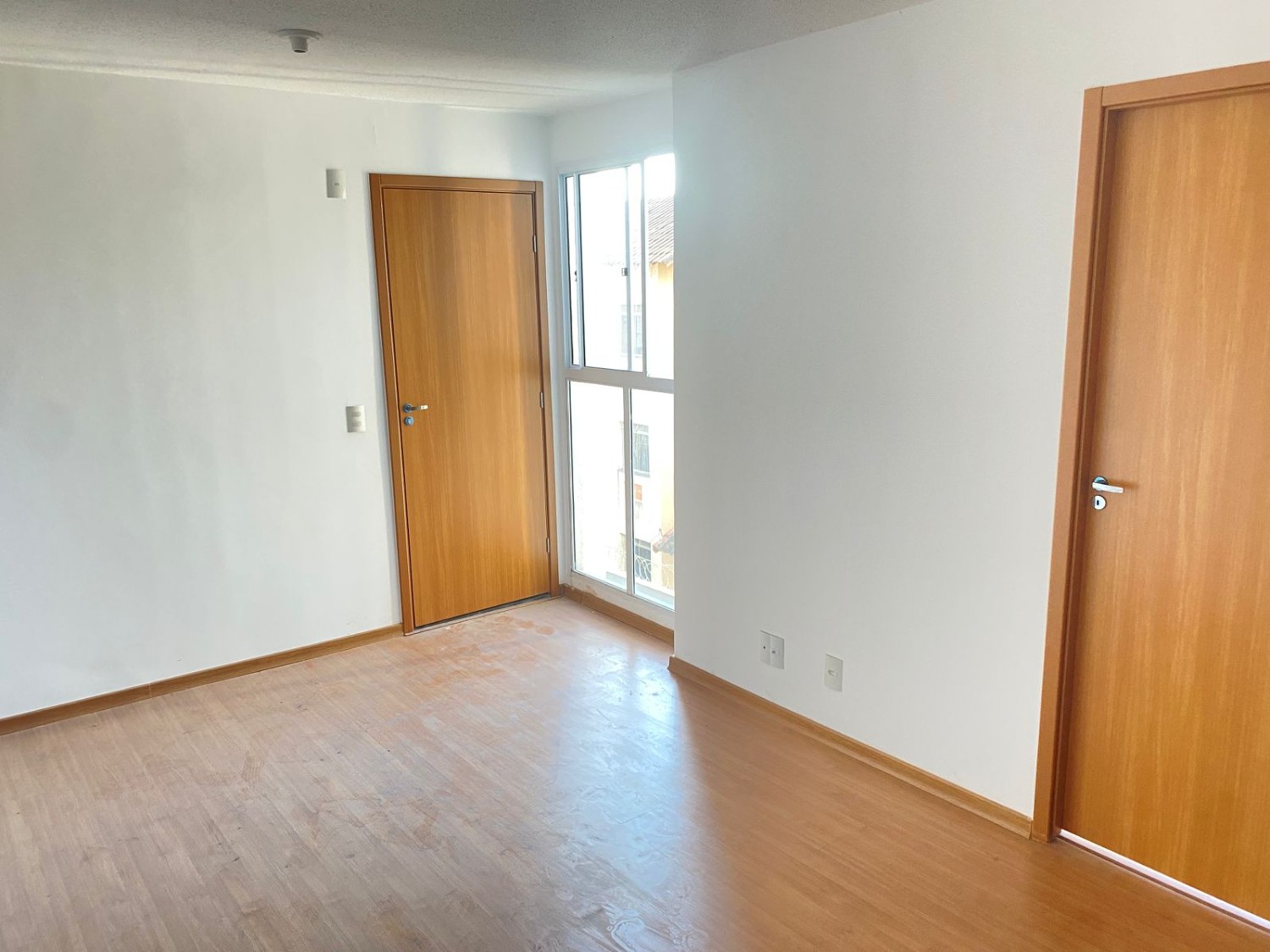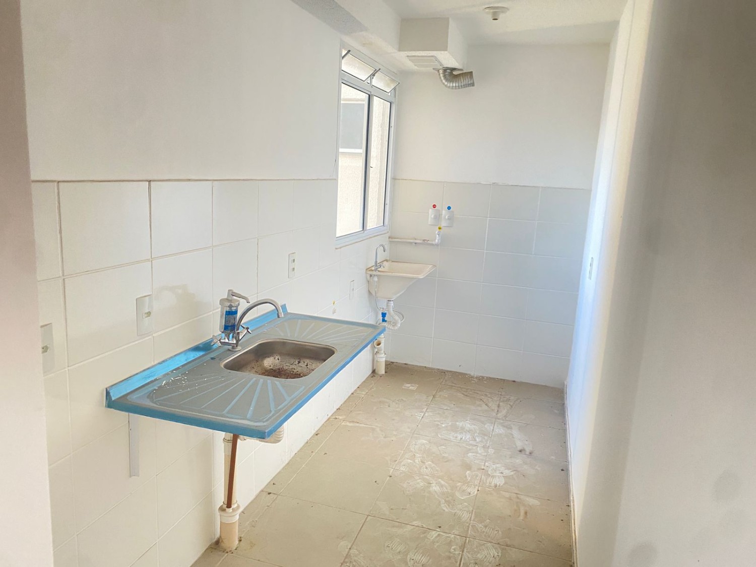 Apartamento com 2 quartos, sala ampla, banheiro social, cozinha com área de serviço.