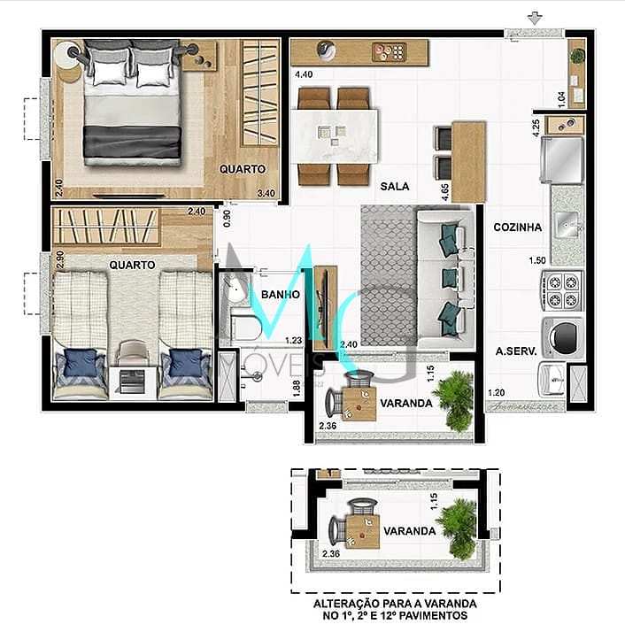 Apartamento à Venda com 2 quartos, 48 m² por R$ 336.000