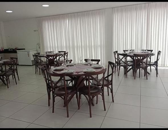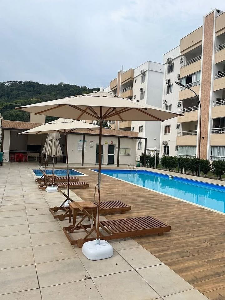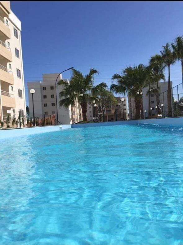 O condomínio oferece área de lazer completa com piscina, salão de festas, playground, quadra poliesportiva, quiosque e mercadinho.