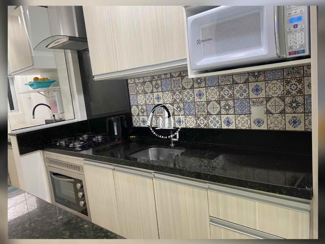O Condomínio Indaiá oferece completa infraestrutura com salão de festas, elevadores e sistema de câmeras de segurança 24 horas. O edifício de 2019 garante excelente padrão construtivo e segurança para os moradores.