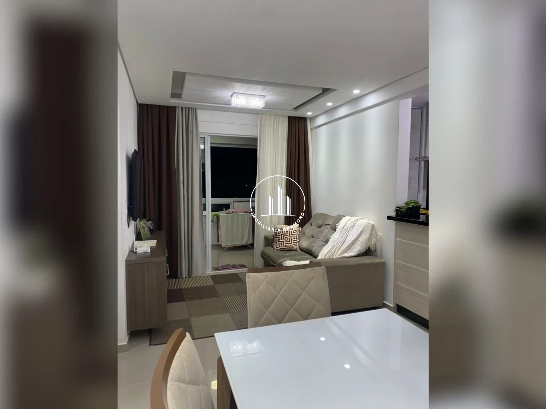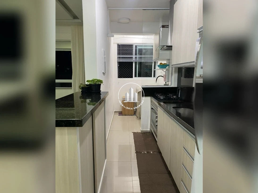 Apartamento 2 quartos em Forquilhinha, São José com 70m² privativos e sacada com churrasqueira. O imóvel possui 2 dormitórios sendo 1 suíte, banheiro social, sala ampla com 2 ambientes, cozinha, área de serviço e 1 vaga de garagem. Conta com móveis planejados embutidos, ar condicionado, vista livre e localização em andar alto com sol da tarde.