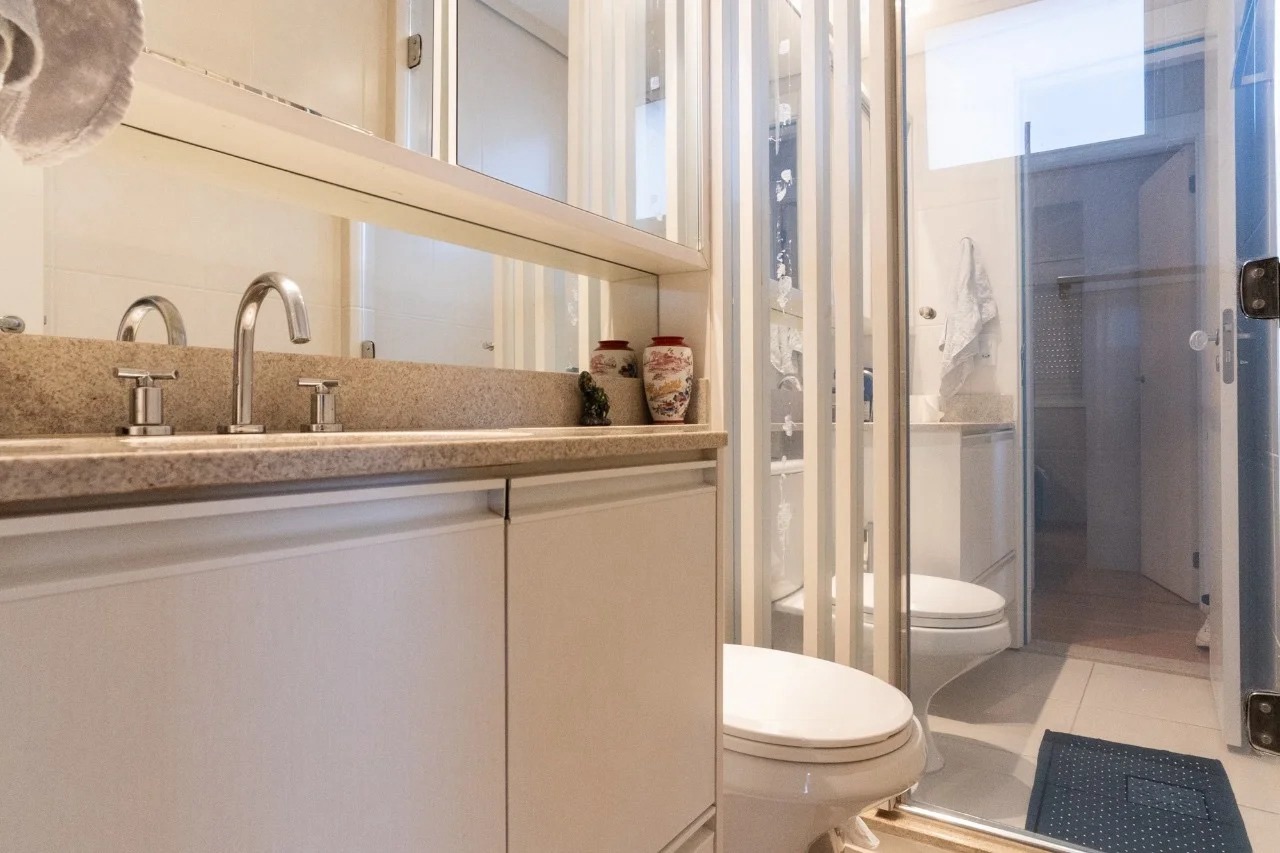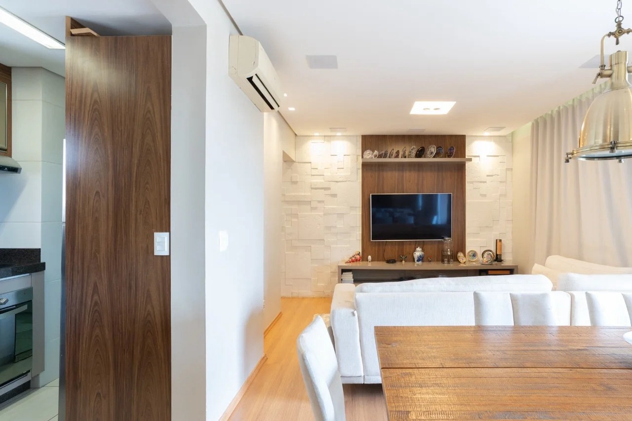Apartamento à Venda - 70m², 2 Dormitórios, 1 Vaga de Garagem Este apartamento foi planejado com atenção a cada detalhe, unindo estética e praticidade para oferecer o máximo de conforto. Com 70m² de área útil, ele conta com dois dormitórios e uma vaga de garagem. O imóvel possui fino acabamento, com detalhes diferenciados: móveis planejados em todos ambientes. Além disso, está equipado com: Cooktop Coifa embutida Forno embutido Ar condicionado (2 unidades, sendo na sala e outro na suíte) Aquecimento a gás.