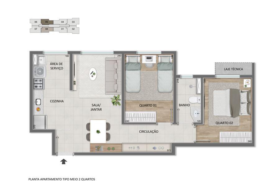Cômodos: Área de Serviço, Cozinha, Quarto, Sala.