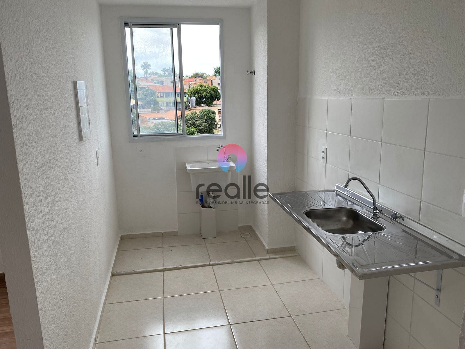 Com o piso em cerâmica nas áreas frias, cozinha, área de serviço e banheiro.