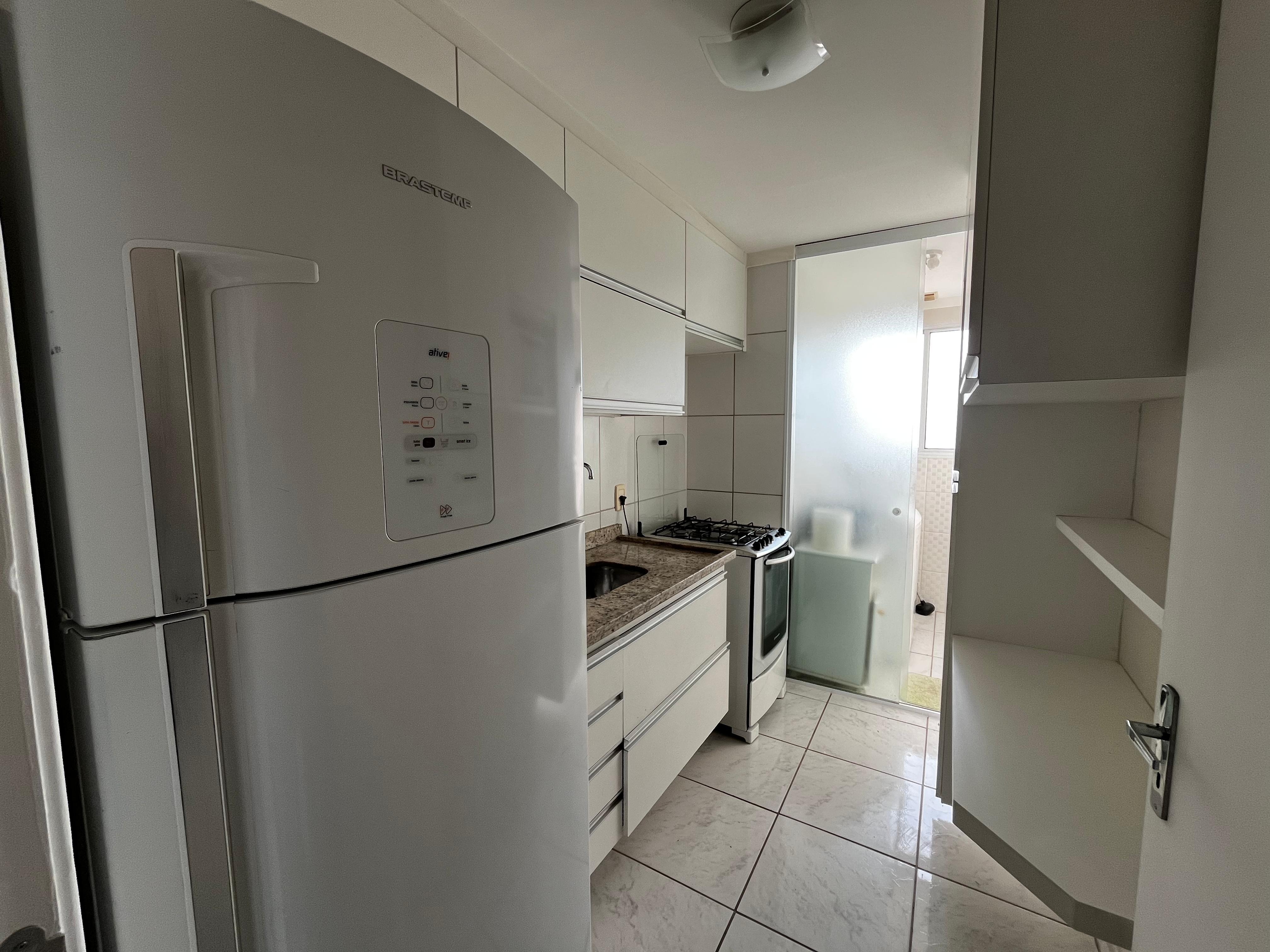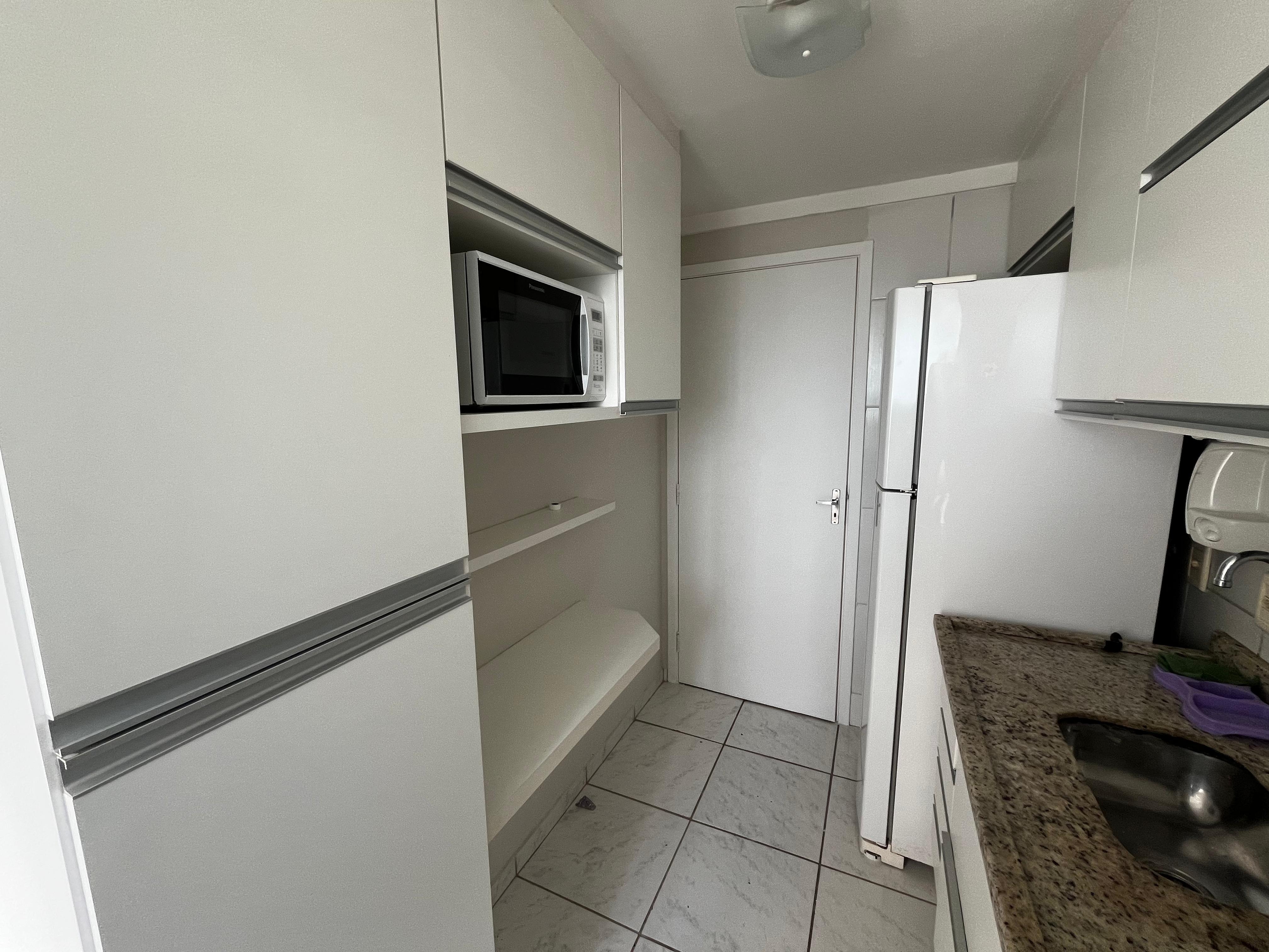 - Cozinha: Totalmente planejada e equipada com geladeira, fogão, liquidificador, micro-ondas e exaustor.