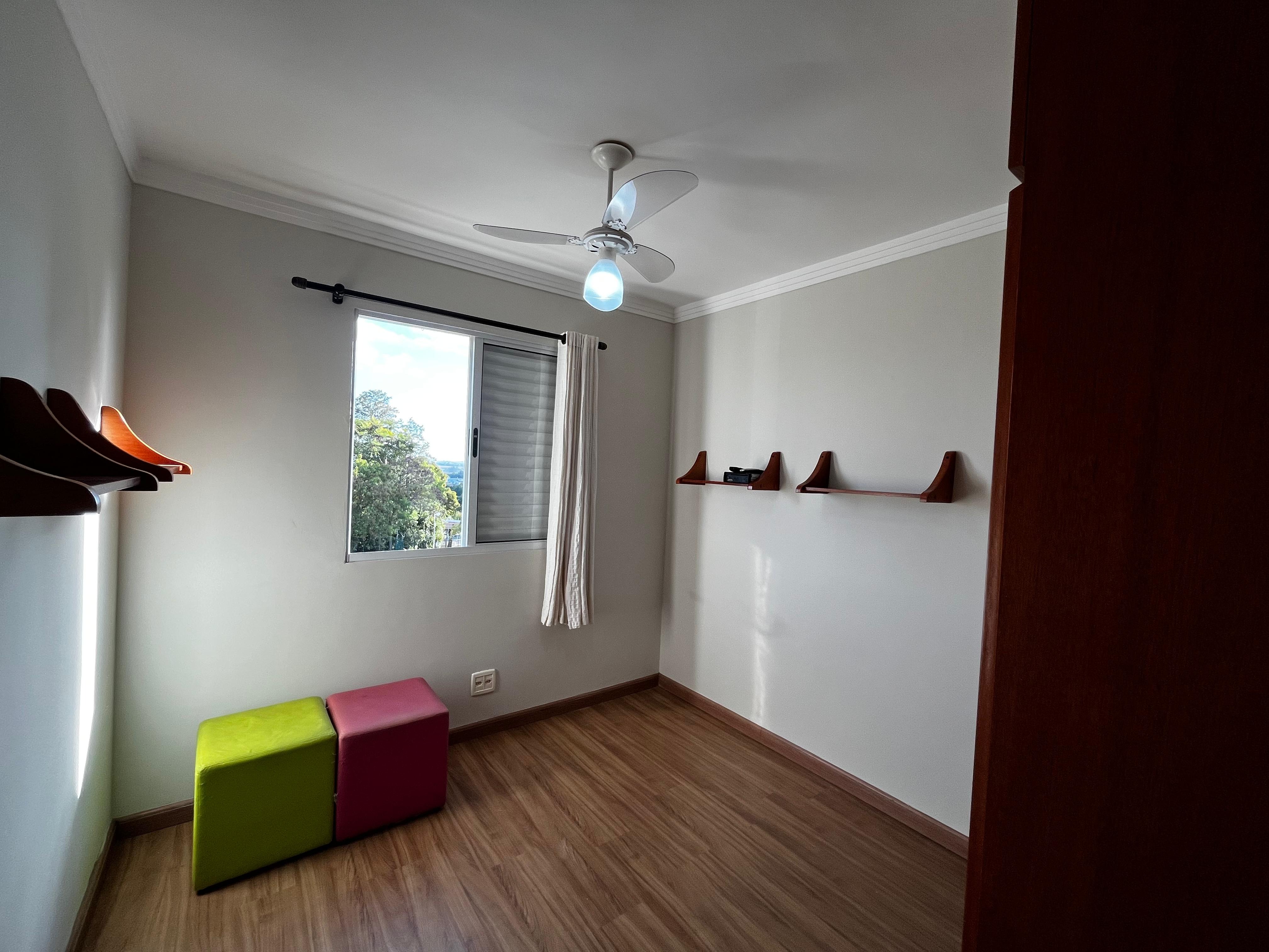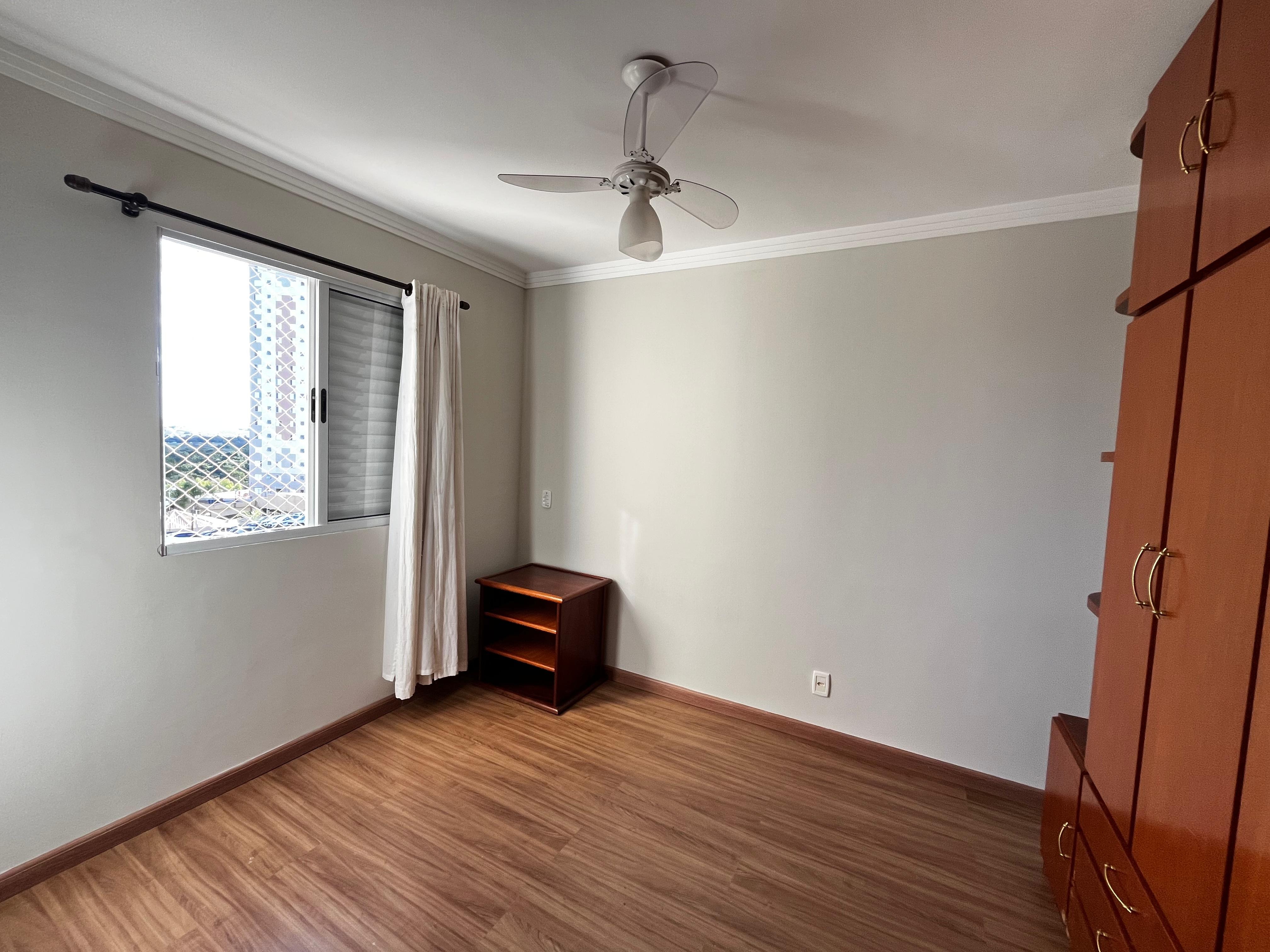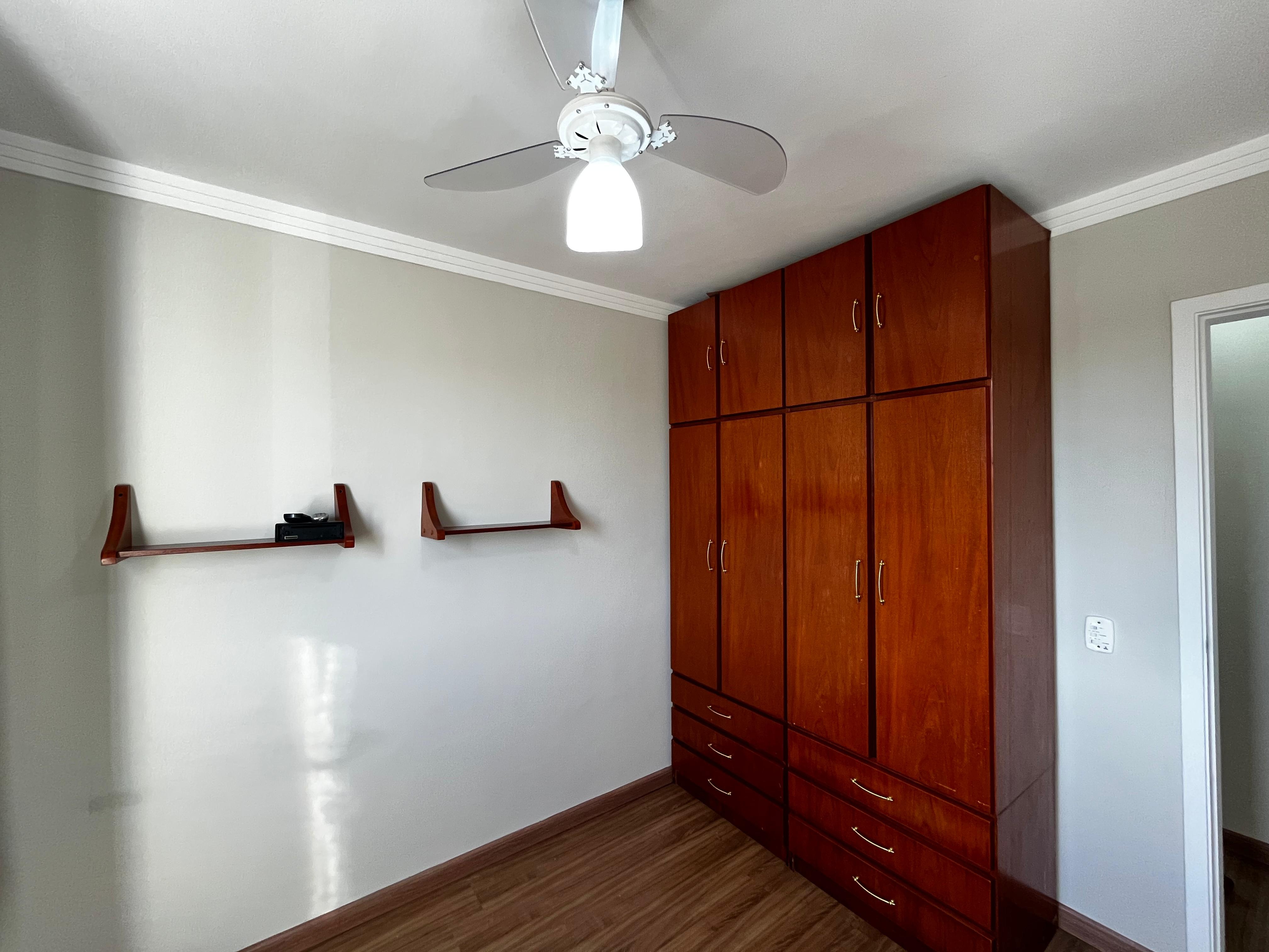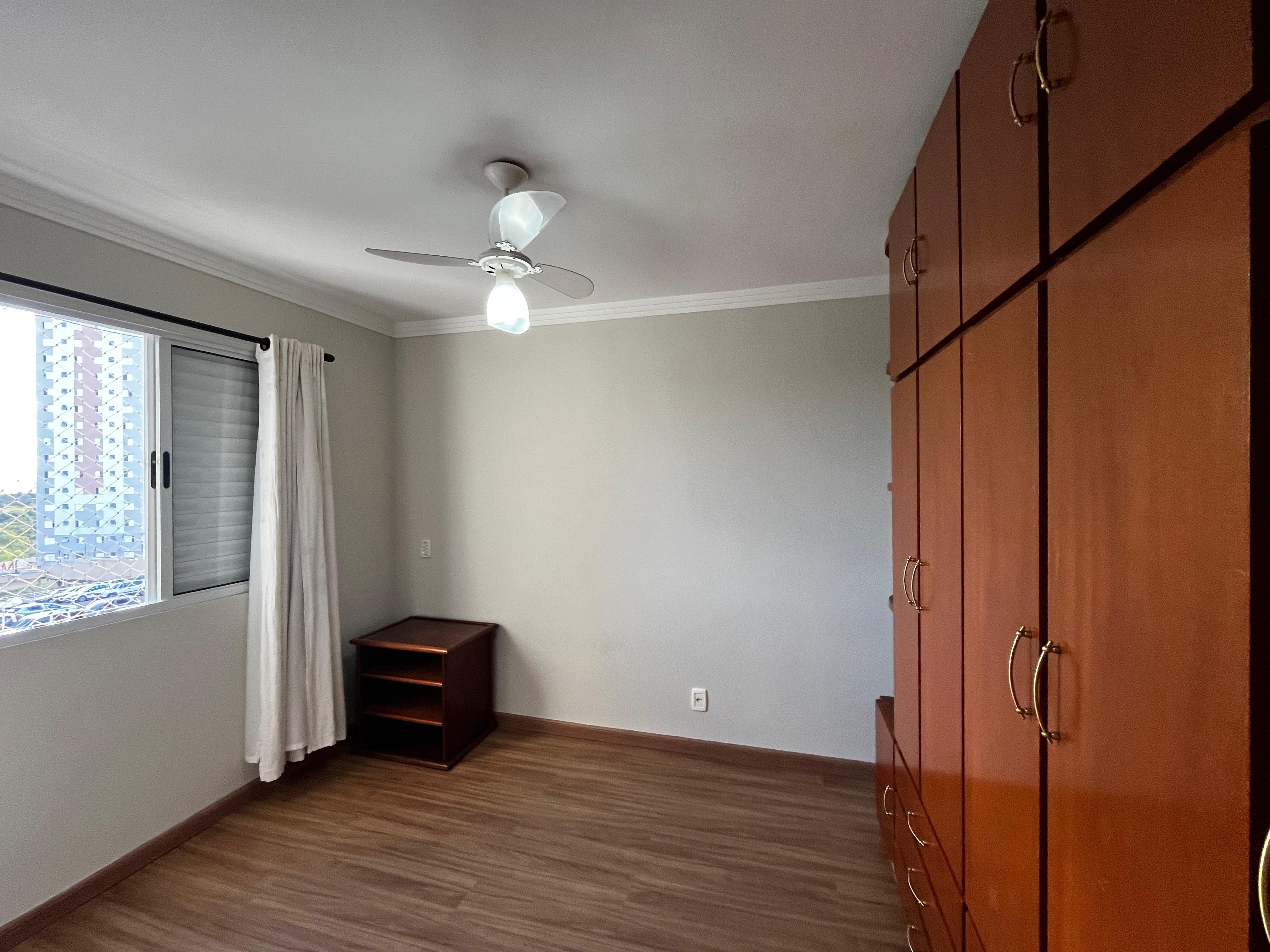 - Quartos:2 dormitórios com cama de casal, armários planejados, piso em porcelanato, cortinas, lustres e ventilador de teto.
