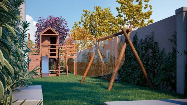 Acabamento: Pé-direito de 2,60m, portas de madeira, janelas em alumínio branco e opção de unidades Garden com gramado e gradil.