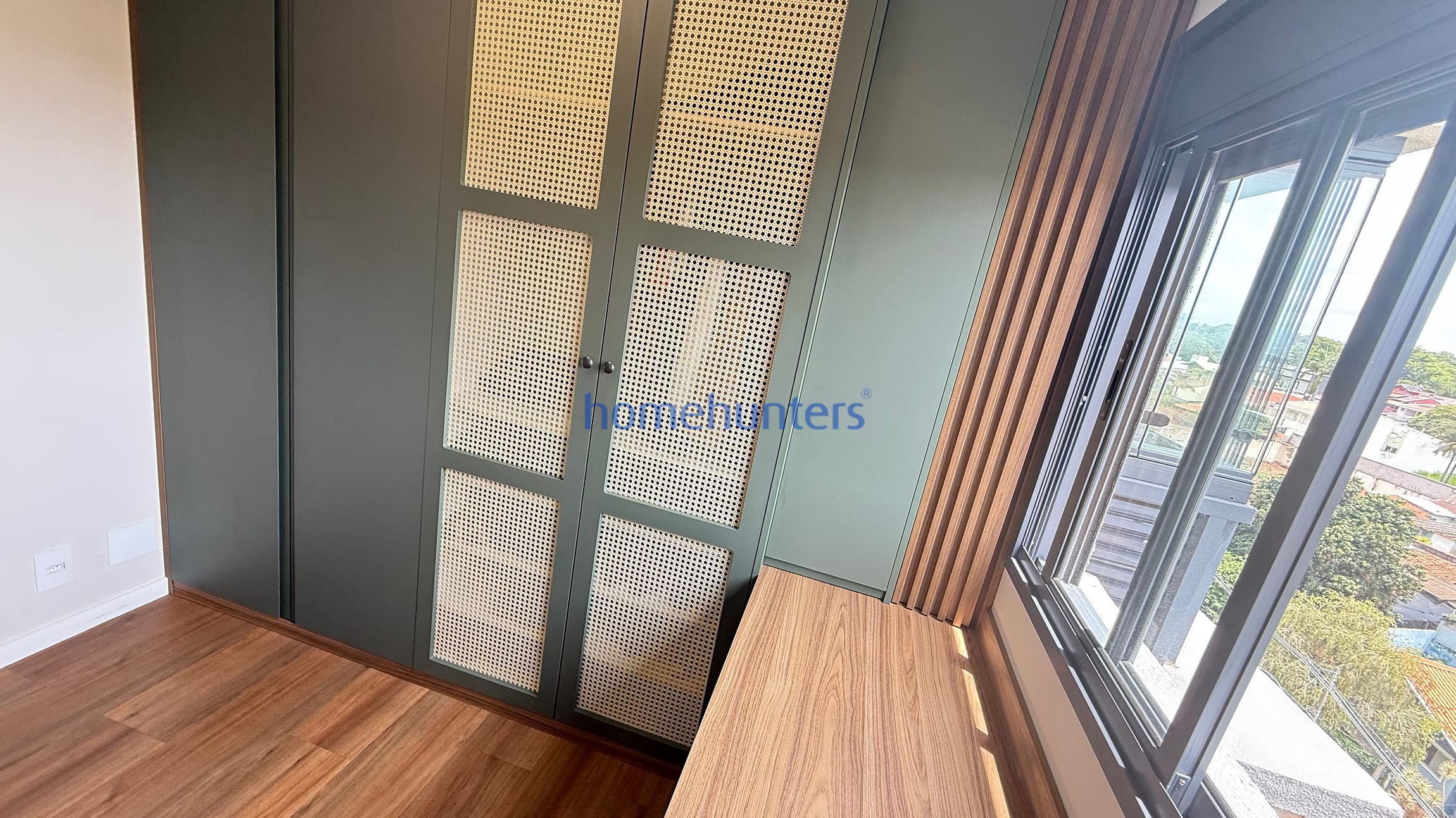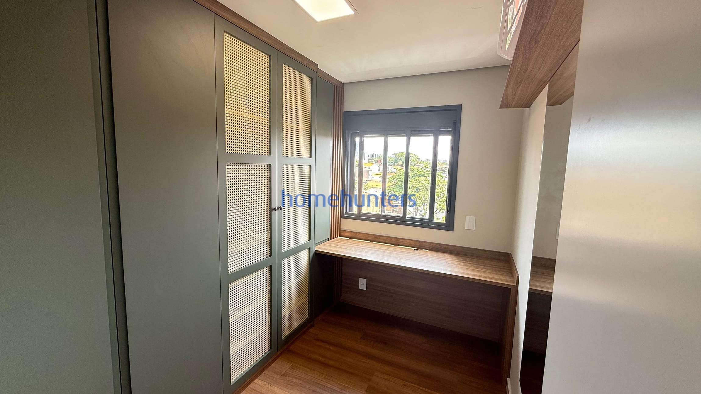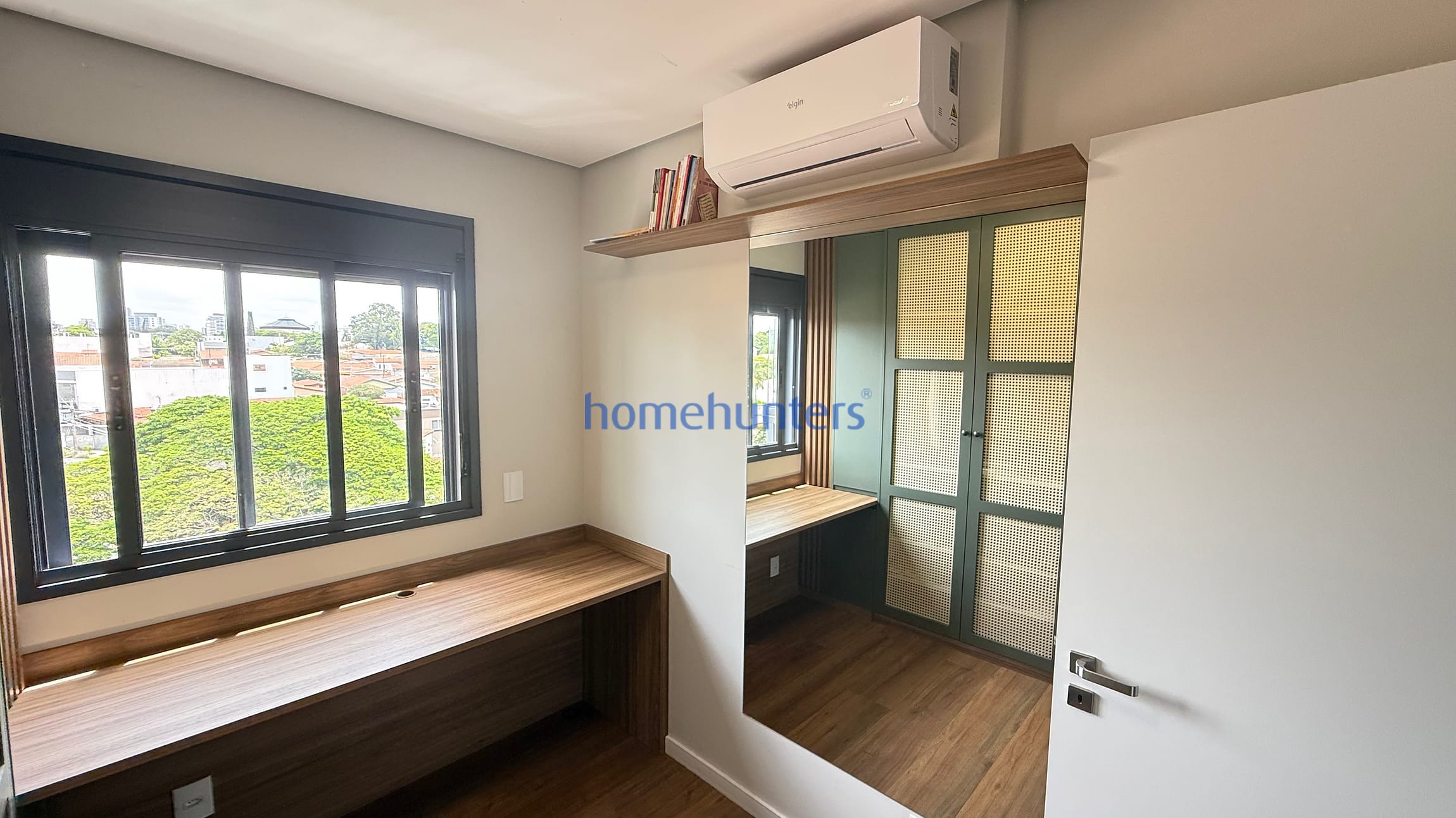 2 quartos com ar-condicionado e armários planejados sendo 1 suíte com cama box.