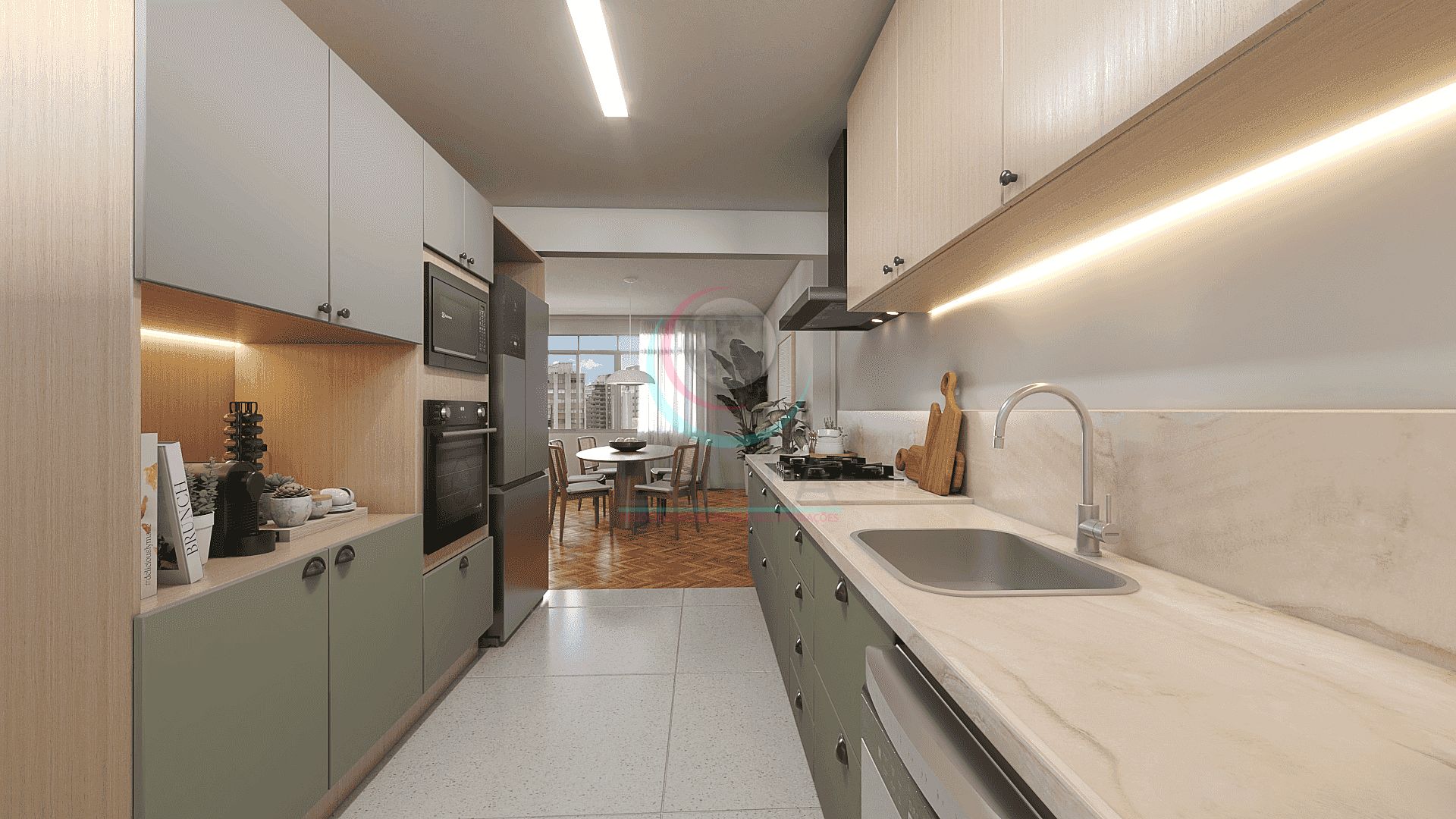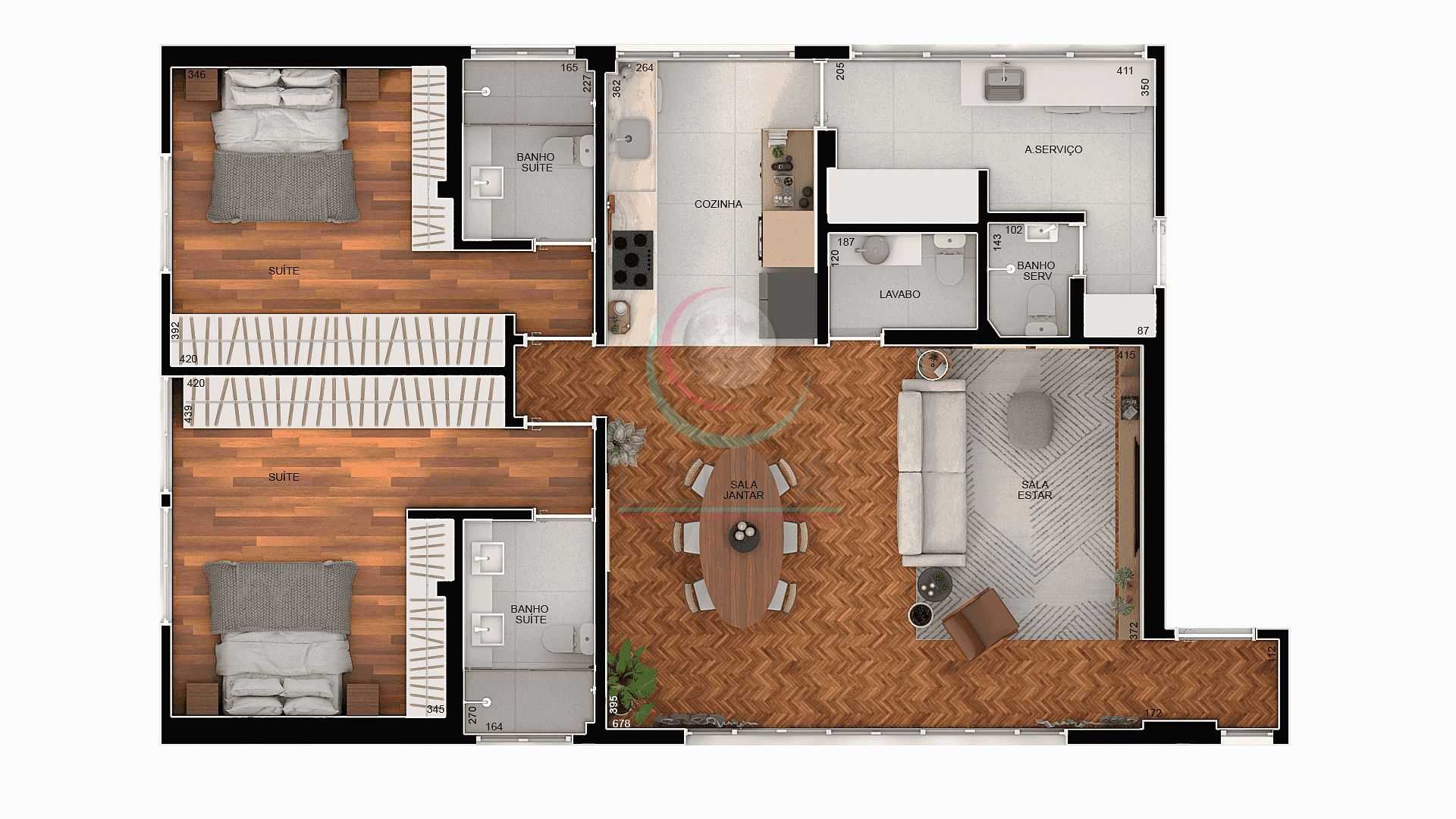 A unidade, que se encontra desocupada, é caracterizada por sua excelente distribuição interna, com uma aconchegante sala de estar e jantar integradas. A cozinha é equipada com acabamentos de alta qualidade, como piso em porcelanato e carpete de madeira nos demais ambientes, conferindo um toque de sofisticação ao conjunto.