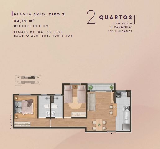 O apartamento conta com 2 quartos, sendo 1 suíte, sala ampla e bem iluminada, cozinha funcional integrada à área de serviço e 1 vaga de garagem. Os ambientes são bem distribuídos, com excelente ventilação e iluminação natural, proporcionando conforto e aconchego no dia a dia.