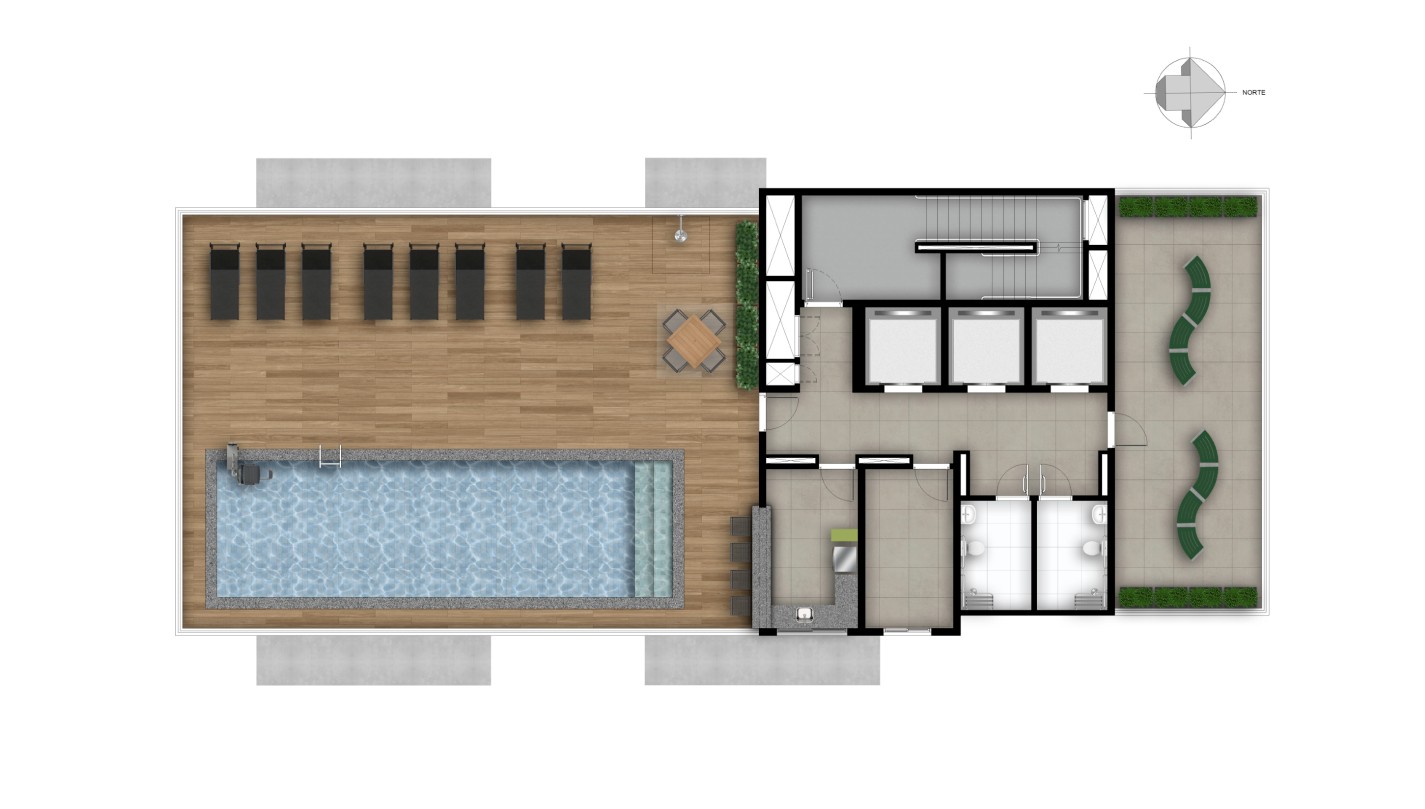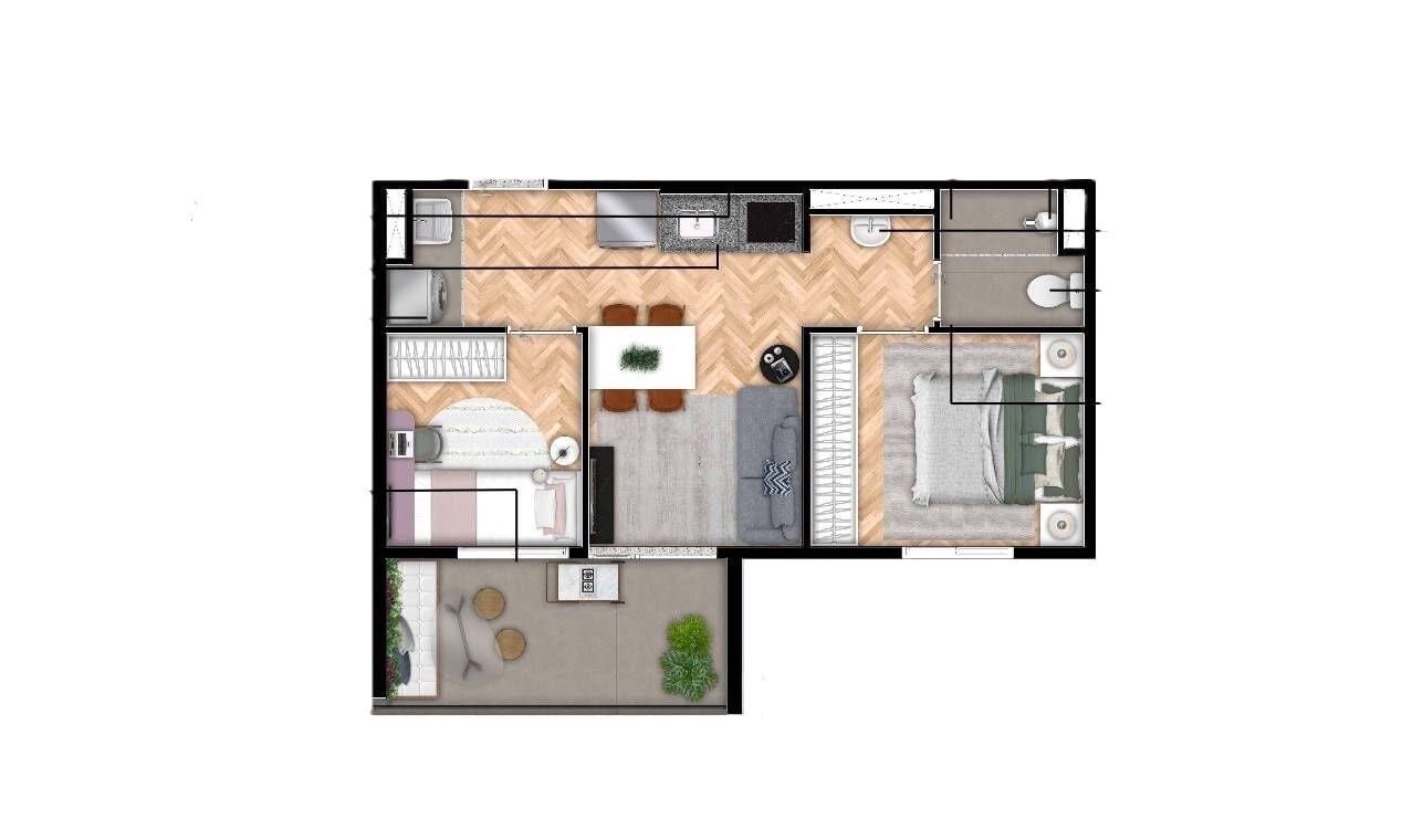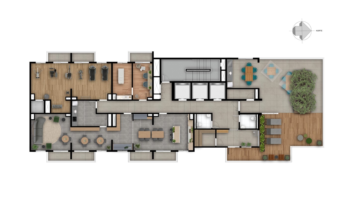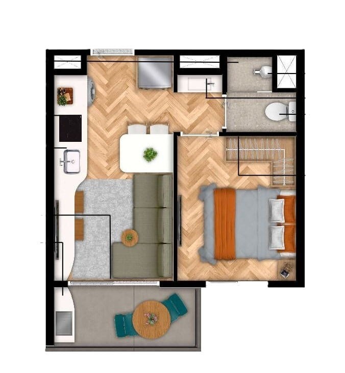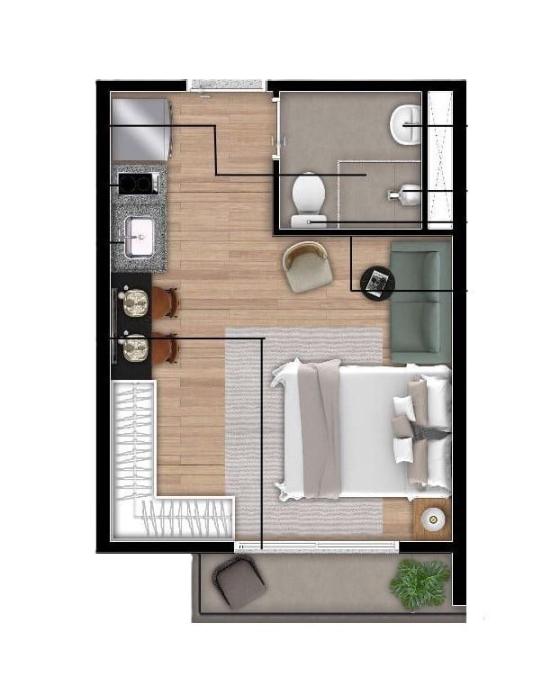 Empreendimento com studios de24 a 29 m² e apartamentos de 2 dormitórios com 46,90 m²