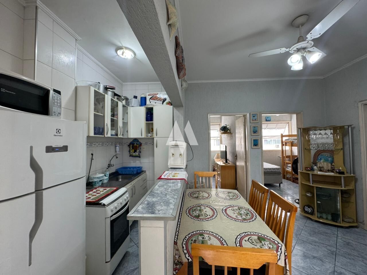 A sala integra-se à cozinha estilo americana, criando um espaço versátil e funcional. O imóvel conta com 2 dormitórios bem ventilados, banheiro social, além de estar localizado em andar alto, garantindo mais privacidade e melhor circulação de ar. O prédio dispõe de elevador social e de serviço, facilitando o acesso em todas as rotinas.