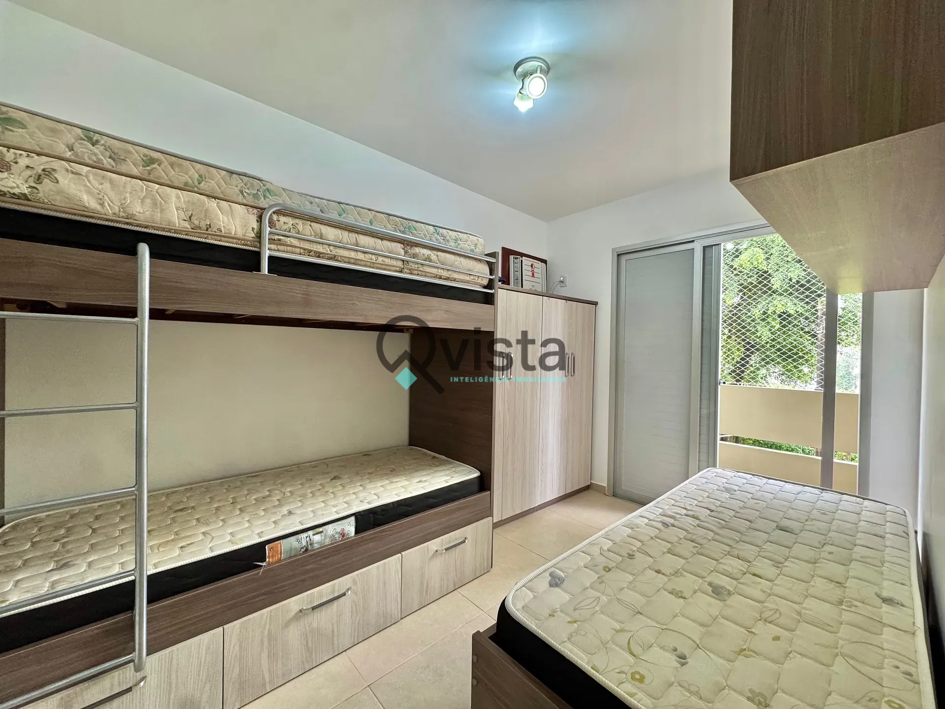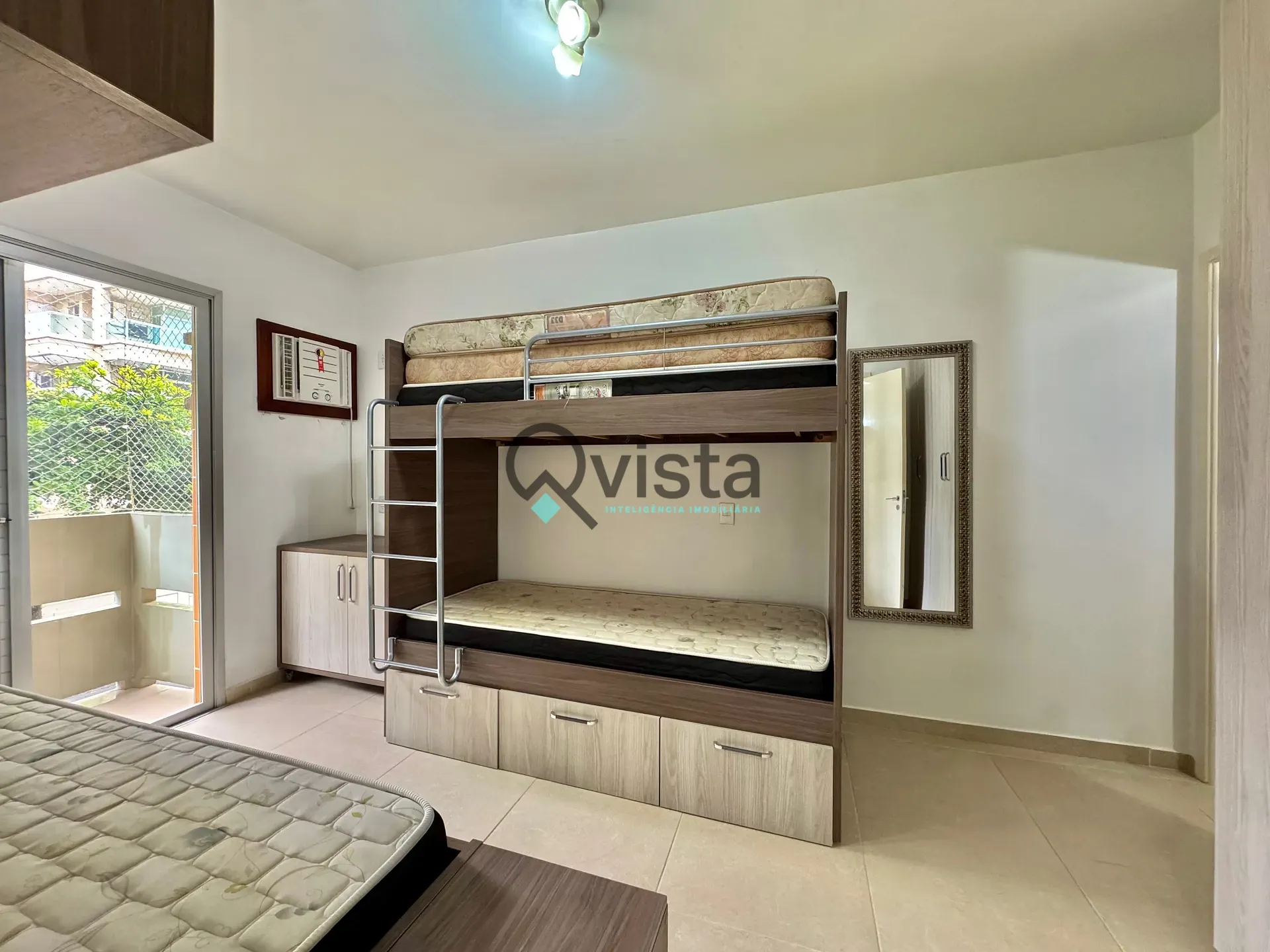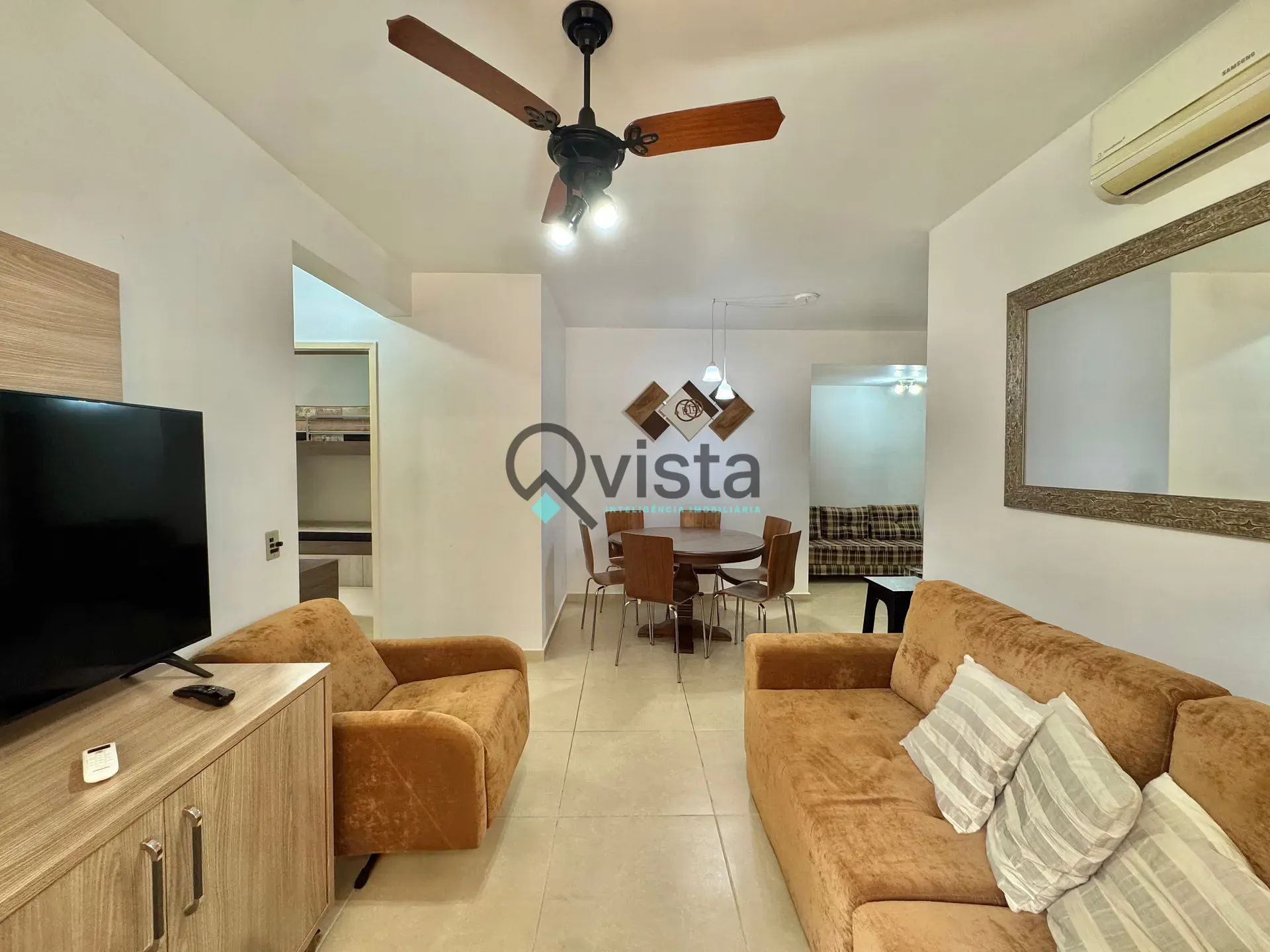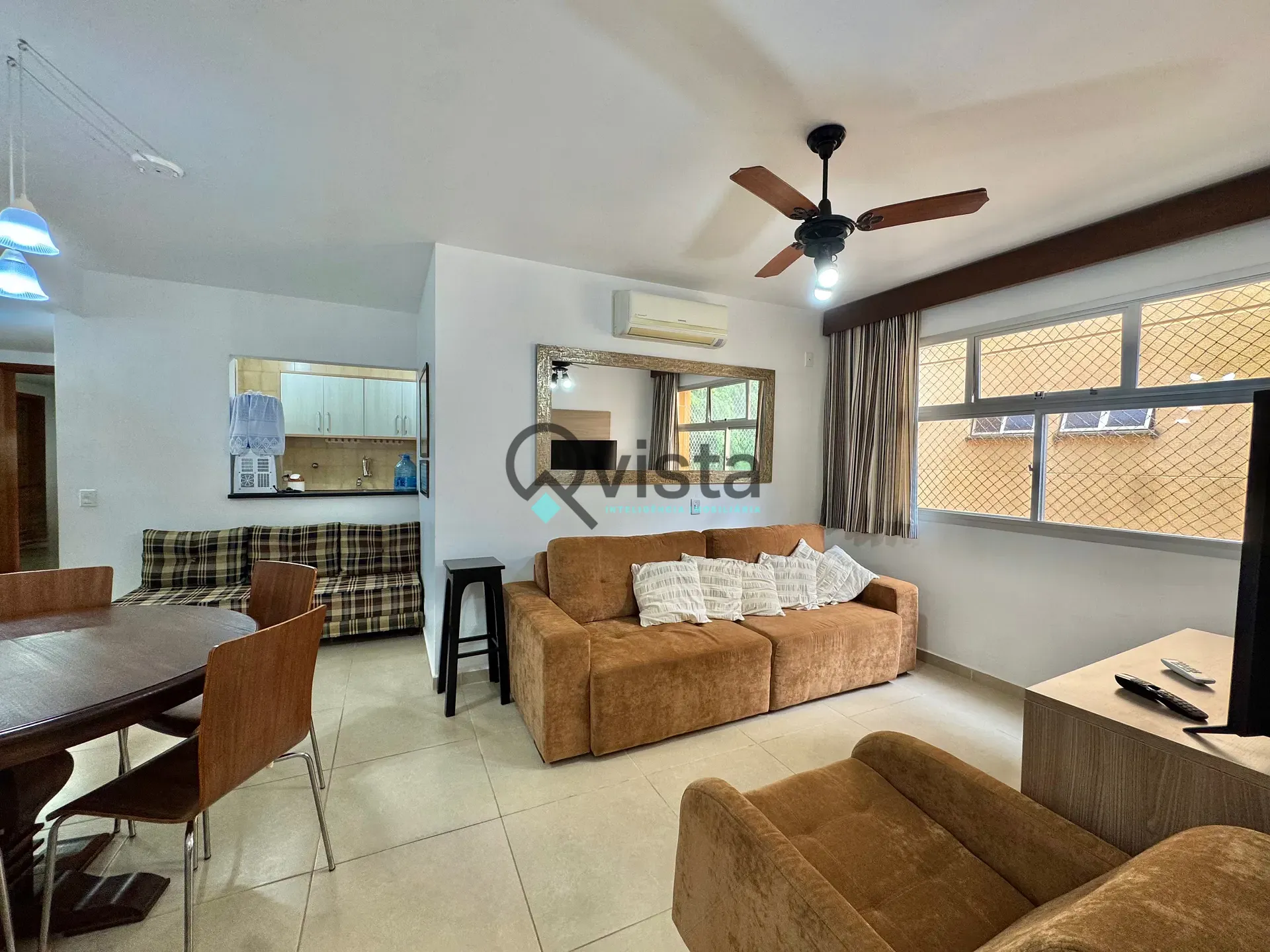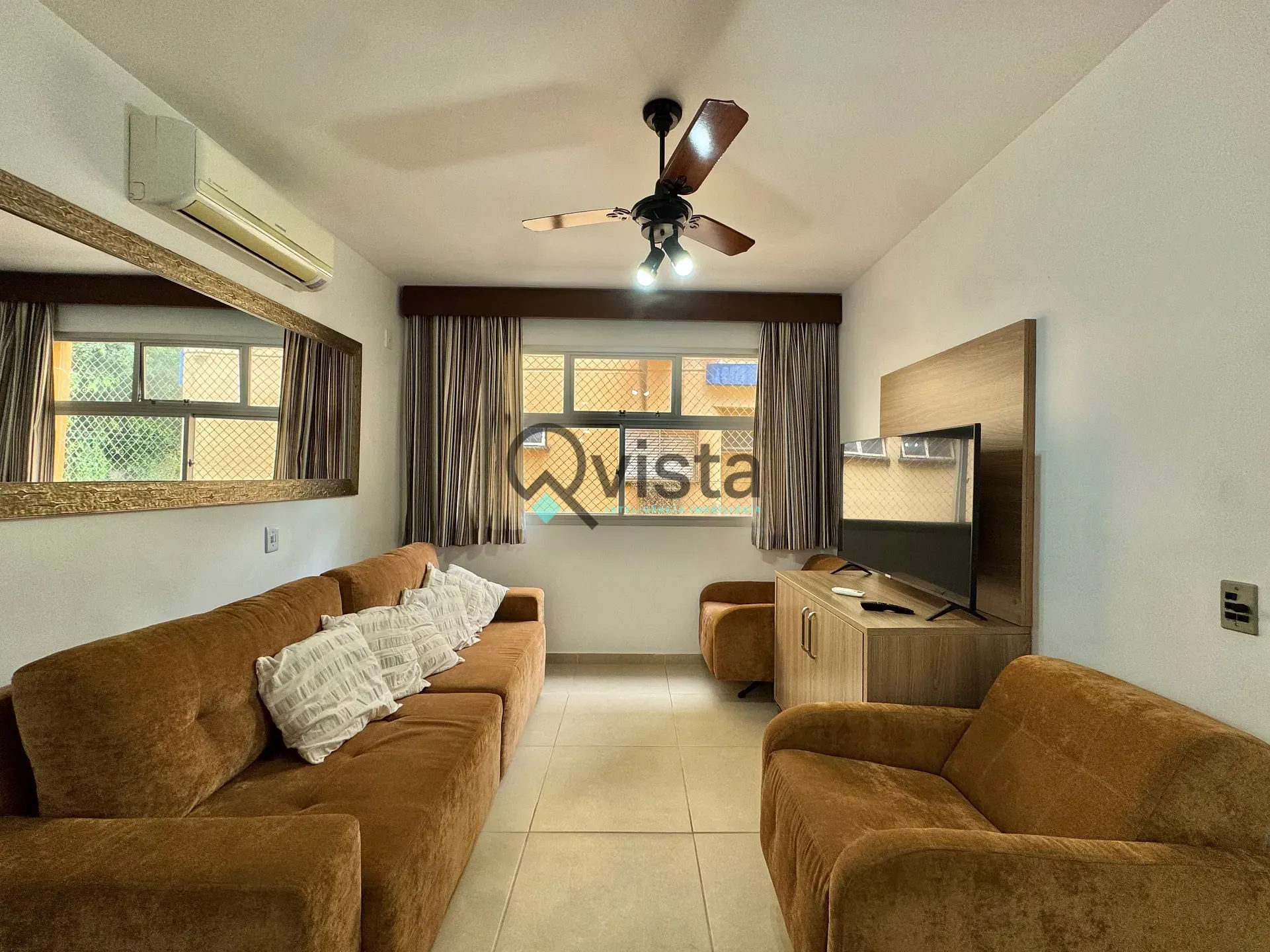 Ar condicionado na sala e nos quartos.