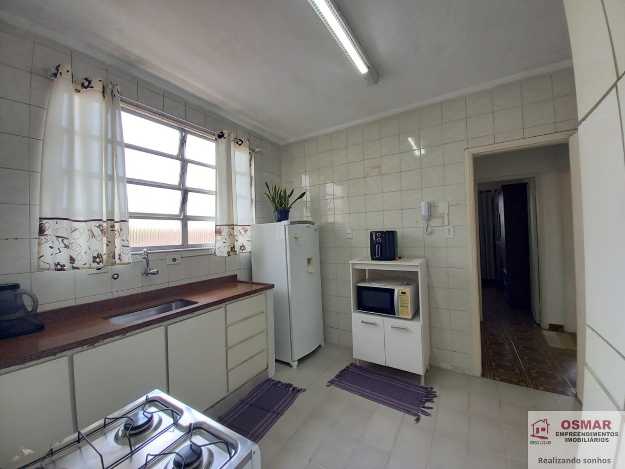 Infraestrutura: Apartamento em prédio de 3 andares, com 90m², com 2 dormitórios, 2 banheiros, Cozinha, Área de serviço, Garagem demarcada (grande cabe carro e moto) e Vista livre.