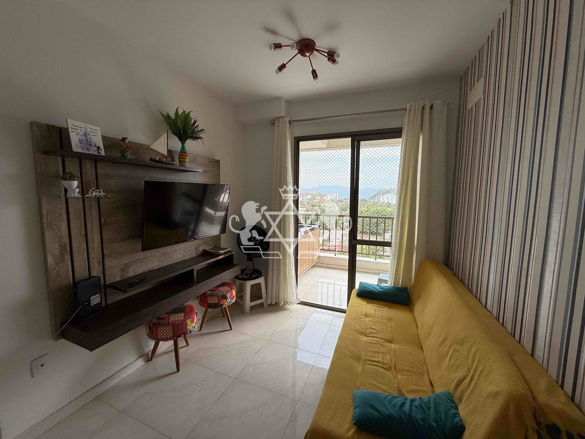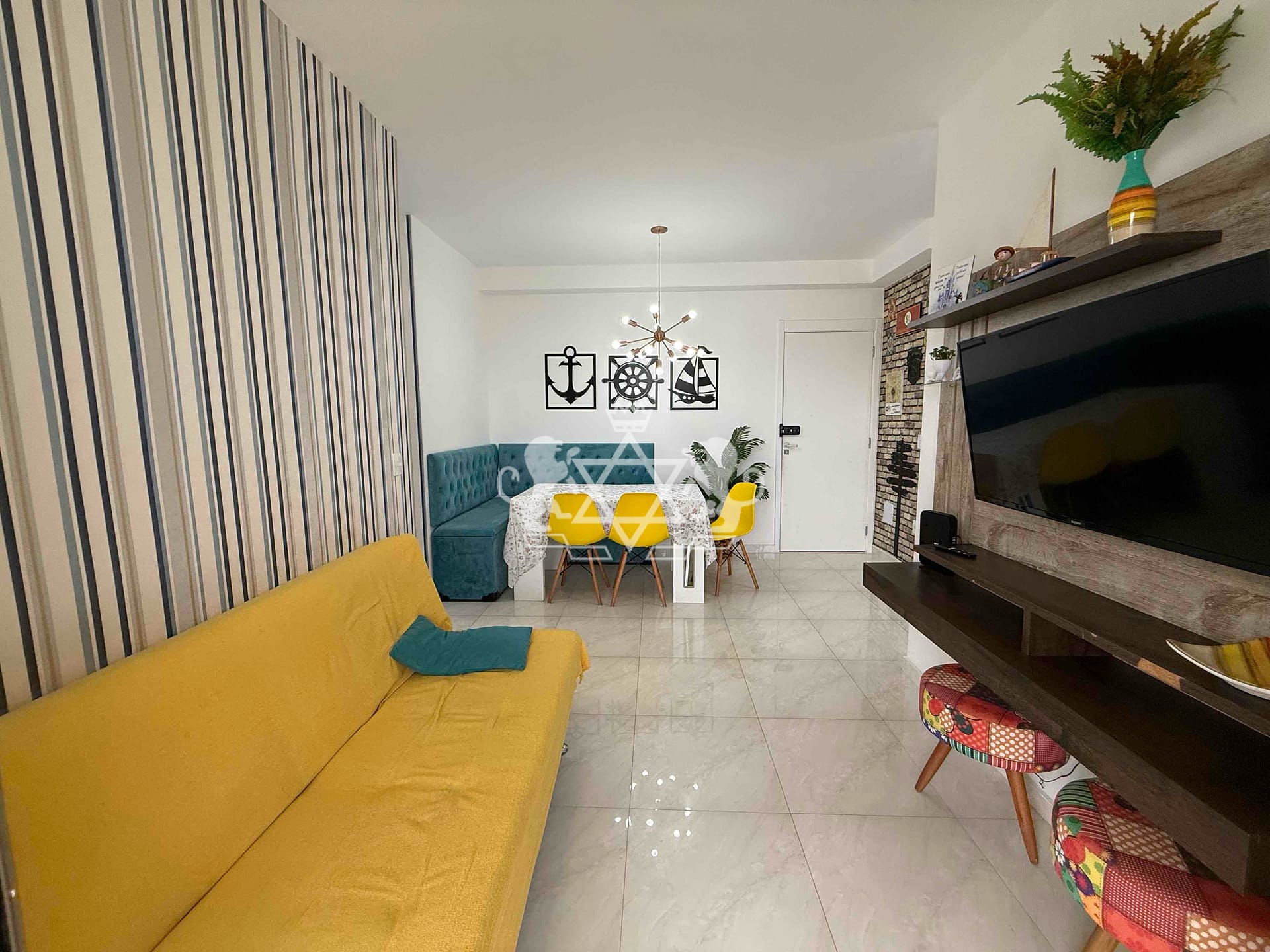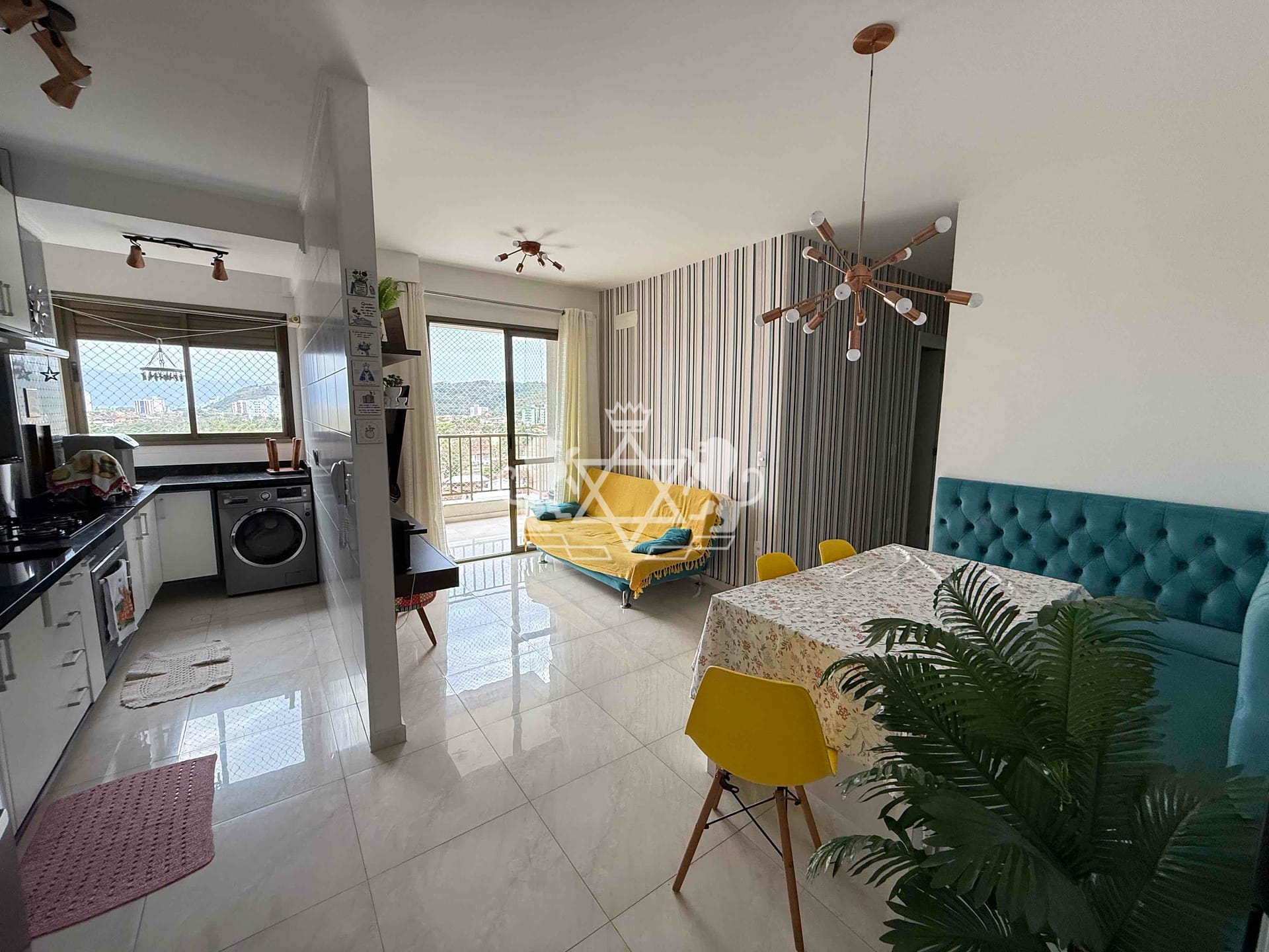Com 56,97m² de área útil, o apartamento é distribuído de forma inteligente e acolhedora: