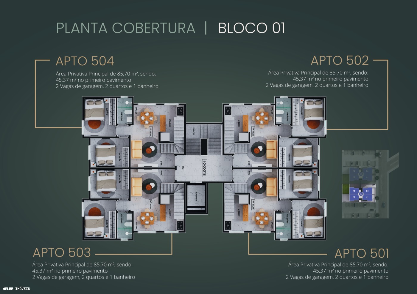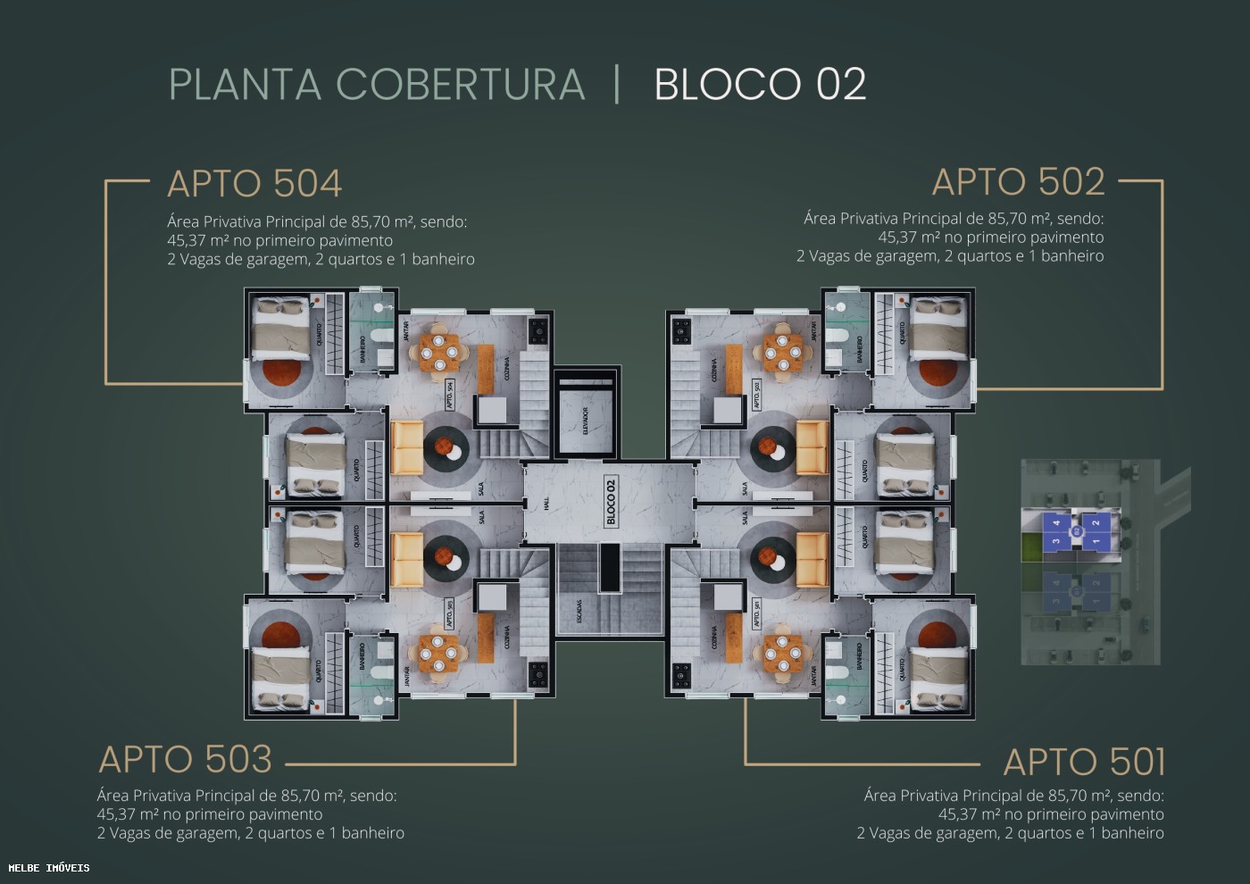 O condomínio também conta com portaria, elevador e áreas comuns cuidadosamente planejadas para garantir conforto e funcionalidade. Um lugar para morar com tranquilidade, viver bem e aproveitar o melhor de um bairro em crescimento constante.