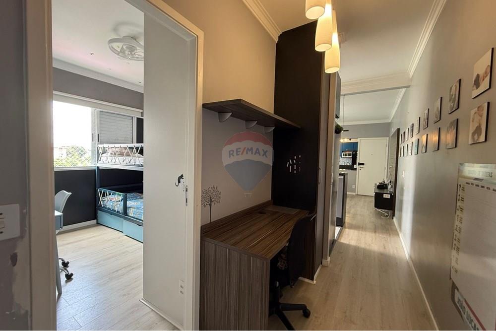 Esse apartamento de 62m² com 2 dormitórios, sala 2 ambientes, cozinha, área de serviço, wc, área para escritório, varanda e 1 vaga de garagem. Móveis planejados conforme fotos. Cozinha equipada. Piso em porcelanato na sala, cozinha e wc, e laminado nos quartos. Banheiro reformado com revestimento em pastilha, balcão de mármore com gabinete. Varanda espaçosa e aconchegante com churrasqueira embutida no balcão. Um lugar para você receber confortavelmente seus amigos e familiares. Imóvel bem iluminado na torre 3 com linda vista para portaria e clube.