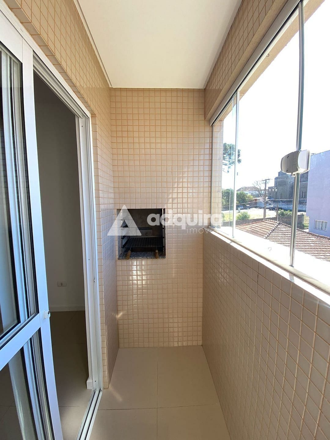 Sala com sacada e churrasqueira;