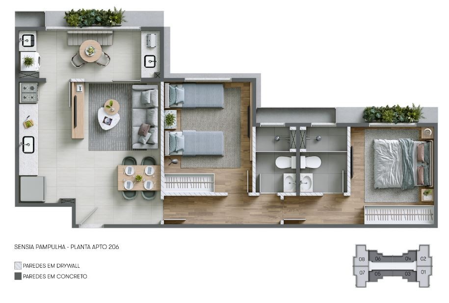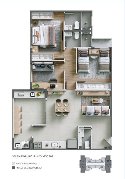 Os apartamentos do Sensia Pampulha foram projetados para oferecer conforto, funcionalidade e sofisticação, com plantas inteligentes que se adaptam a diferentes perfis de moradores:
