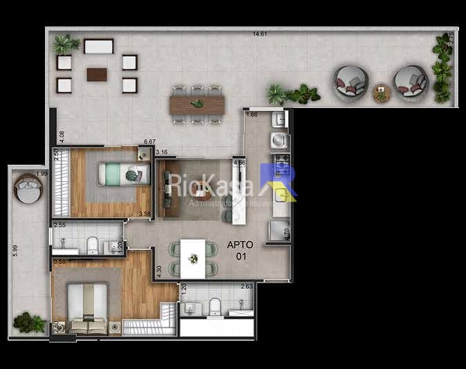 Apartamento à Venda com 2 quartos, 88 m² por R$ 1.102.988
