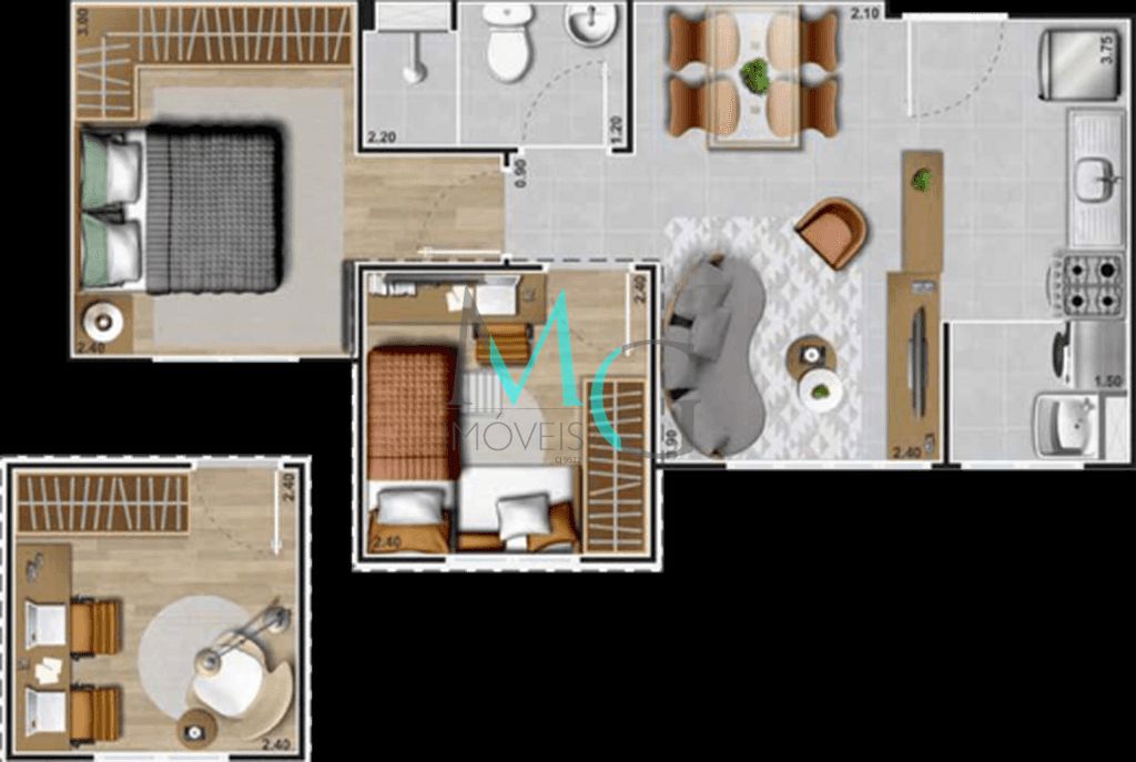 Apartamento à Venda com 2 quartos, 35 m² por R$ 212.500