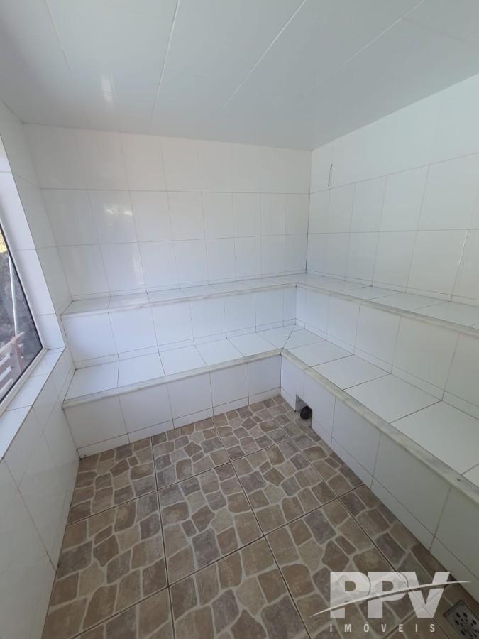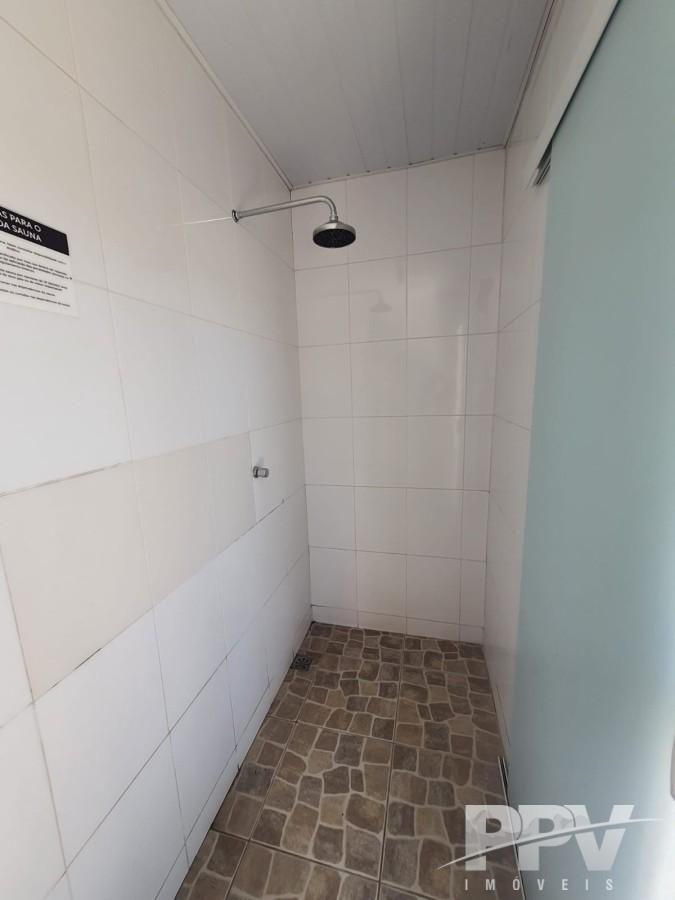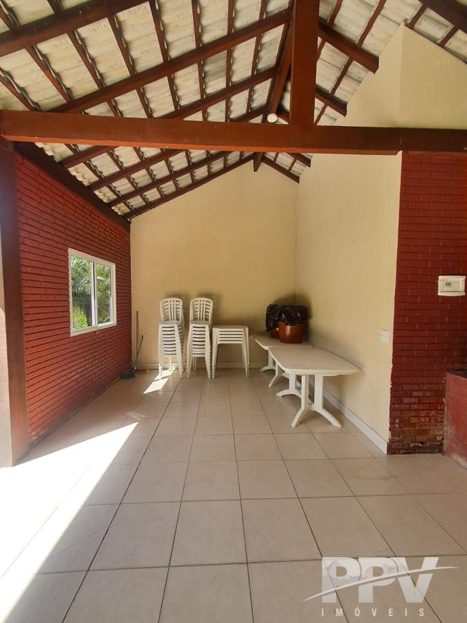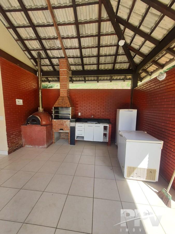Condomínio oferece área de lazer com piscina, sauna, churrasqueira, forno de pizza, salão de festas, além de portão eletrônico e monitoramento por câmeras.
